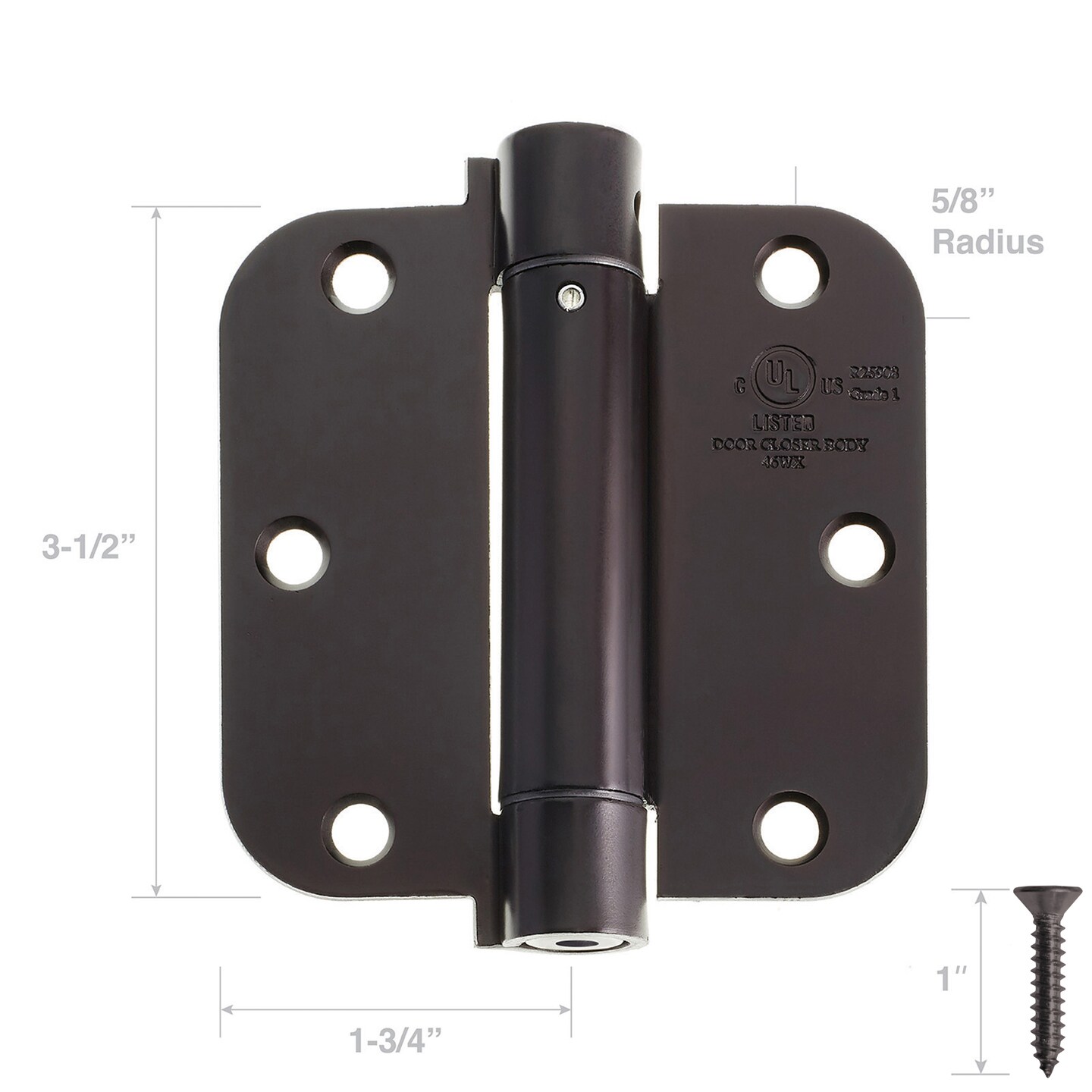 Cauldham (2 Pack) Heavy-Duty 3-1/2" Self-closing Spring Door Hinge with 5/8" Radius Corners, UL Listed