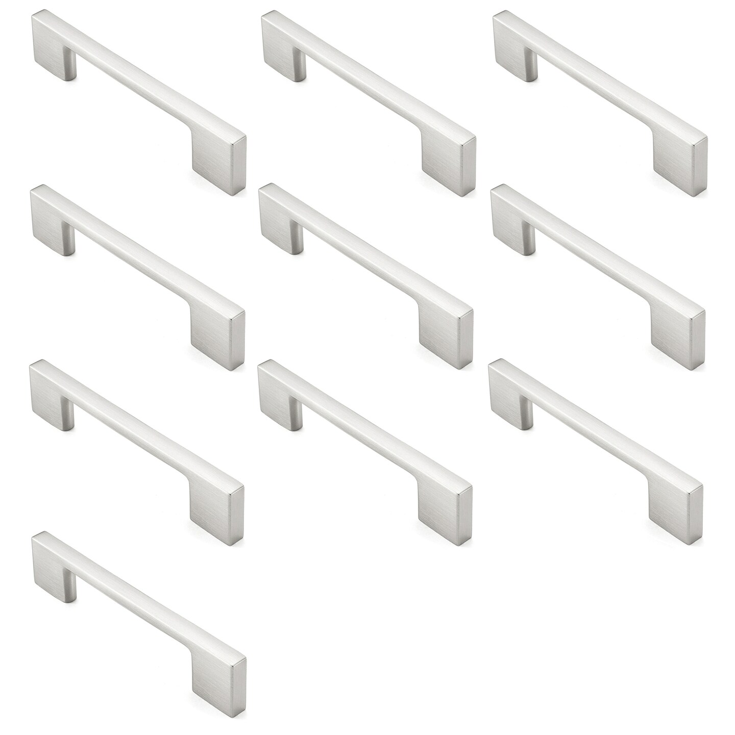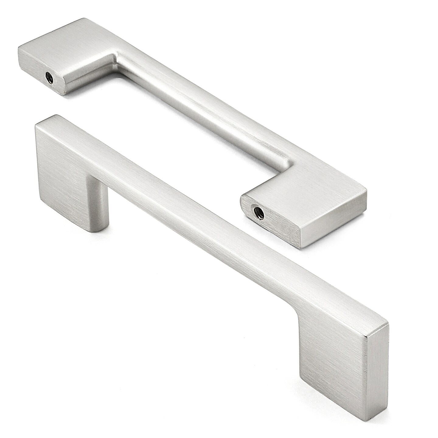 Cauldham Solid Kitchen Cabinet Pulls Handles (3-5/8" Hole Centers) - Modern Thin Profile Drawer/Door Hardware - Style M255 - Satin Nickel