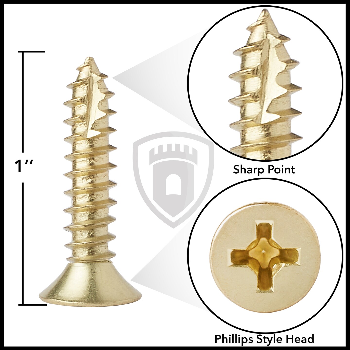 Cauldham Wood Screws #9 x 1 Inch for Door Hinges - 25 pack