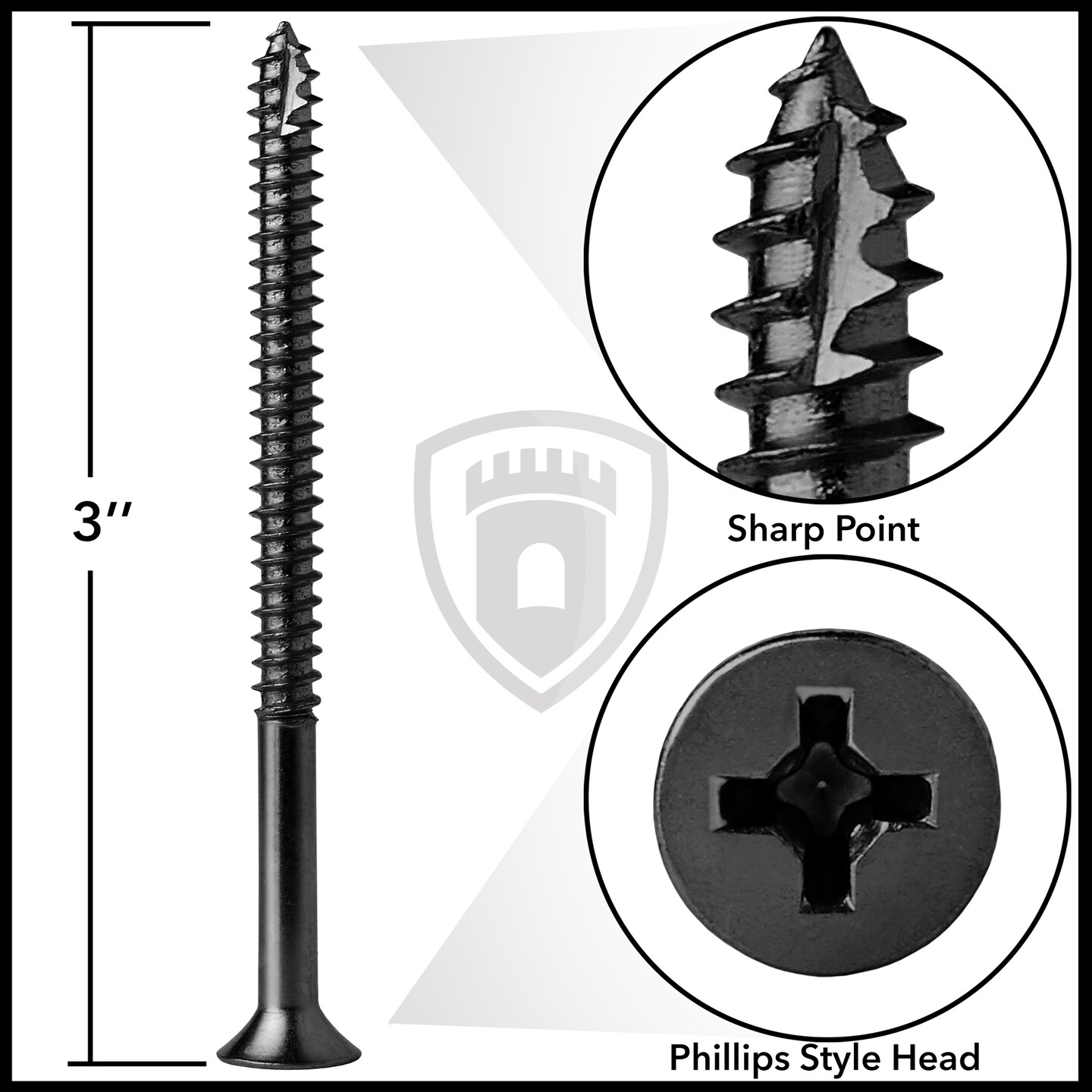 Cauldham Wood Screws #9 x 3 Inch for Door Hinges - 25 pack