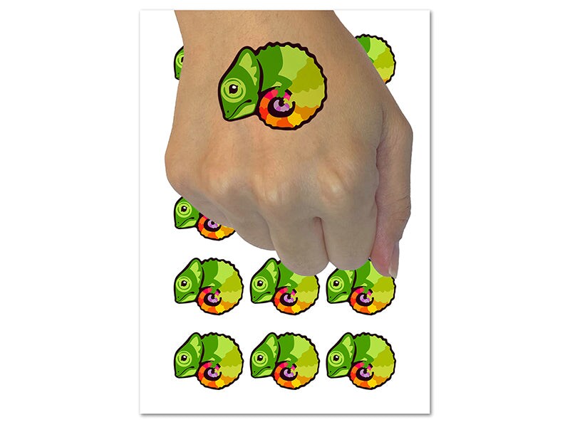Cautiously Curled Chameleon Lizard Temporary Tattoo Water Resistant Fake Body Art Set Collection (1 Sheet)