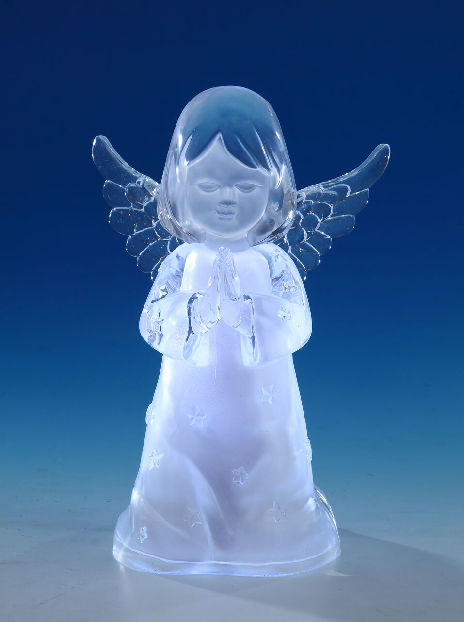 CC Christmas Decor Set of 2 Clear Decorative Cherub Girl LED Tabletop Decors 8"