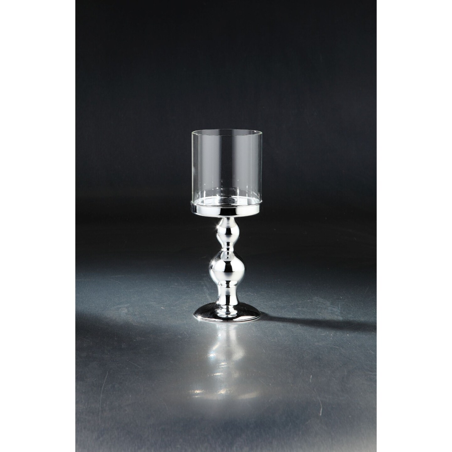 CC Home Furnishings 11" Silver Hand Blown Glass Candle Holder