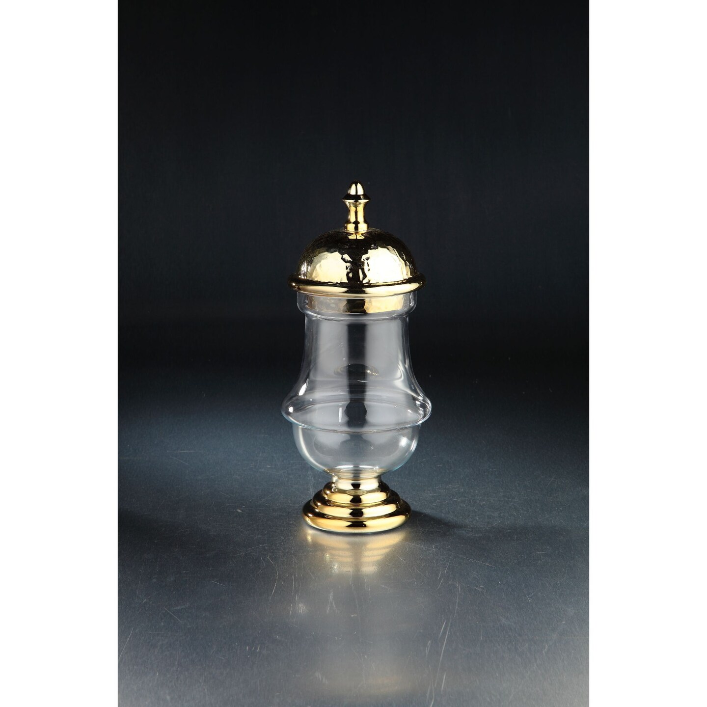 CC Home Furnishings 14" Clear and Gold Hand Blown Glass Jar with Finial Lid