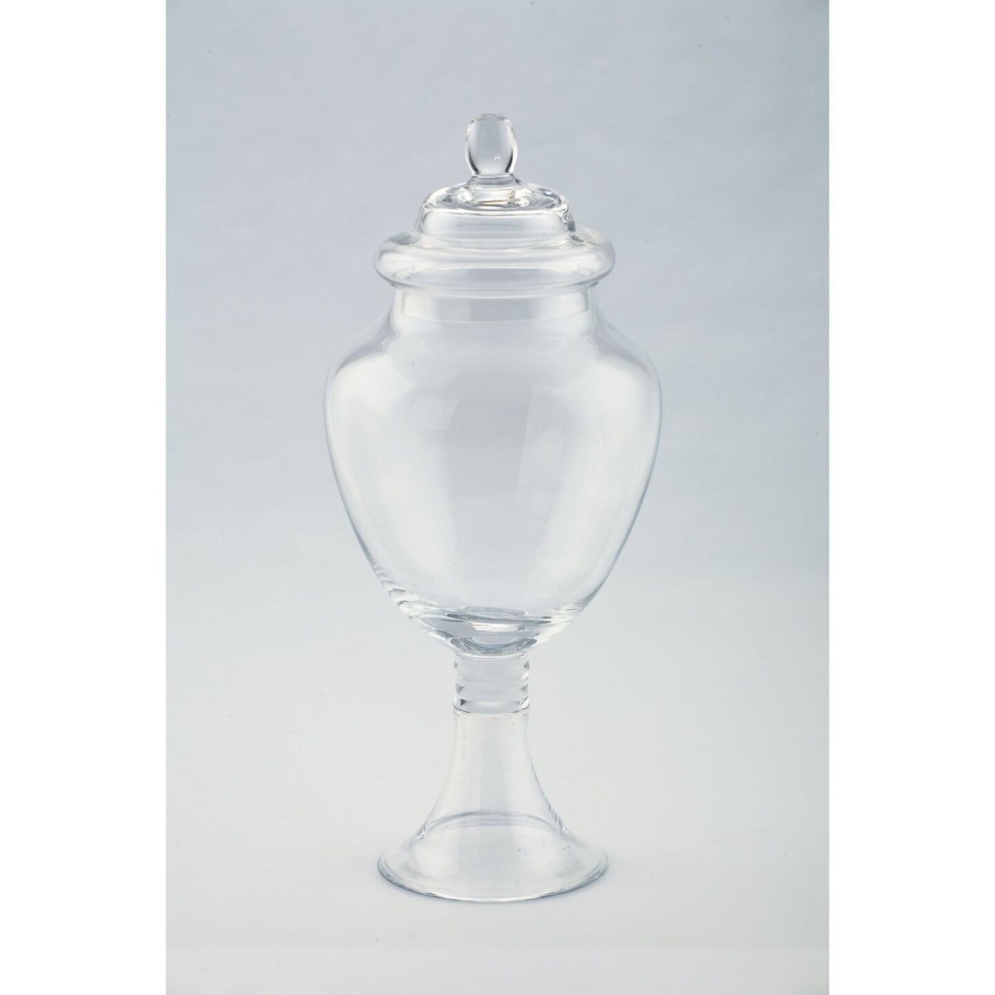 CC Home Furnishings 14" Clear Hand Blown Glass Jar with Finial Lid
