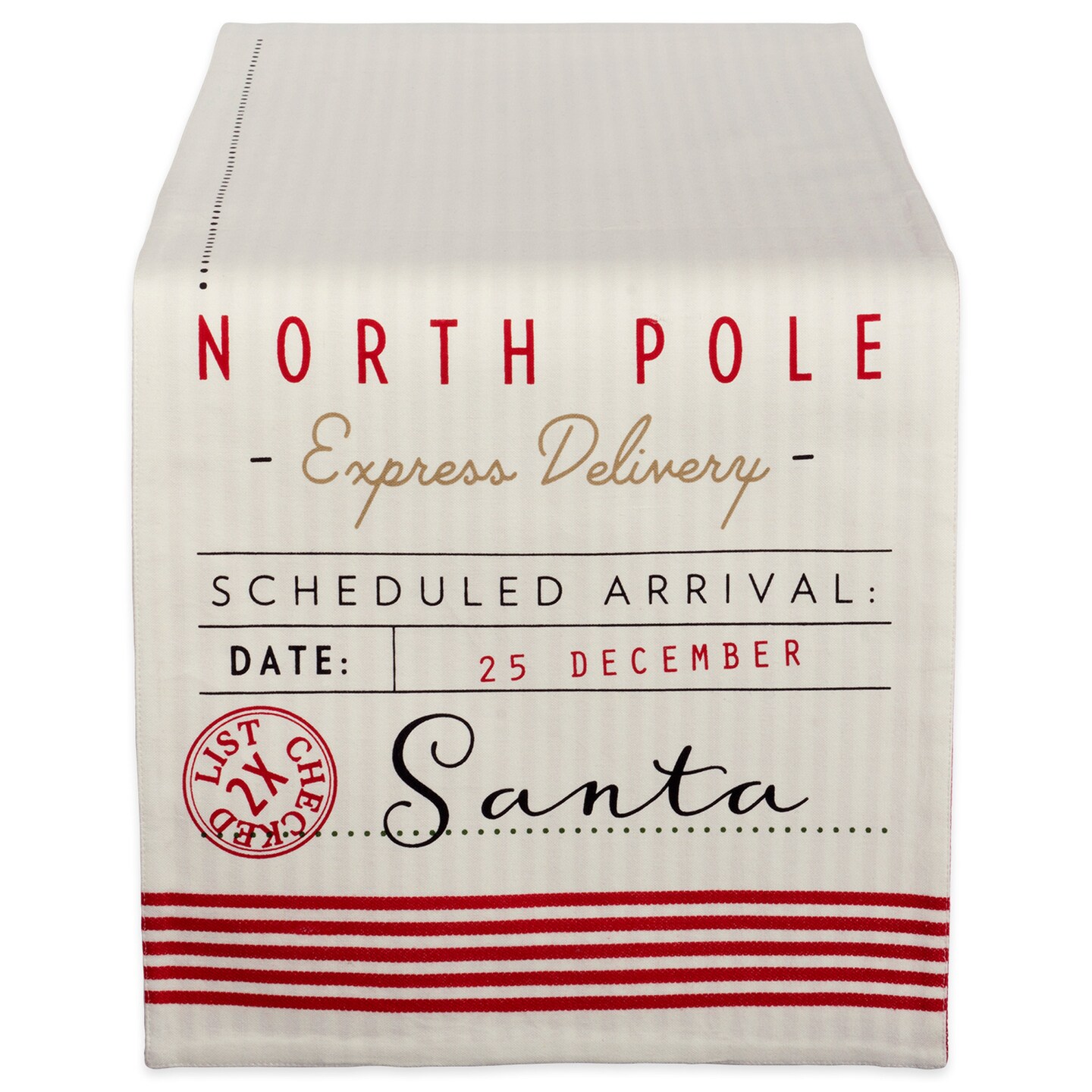 CC Home Furnishings 14" x 72" Beige and Red North Pole Express Delivery Christmas Table Runner