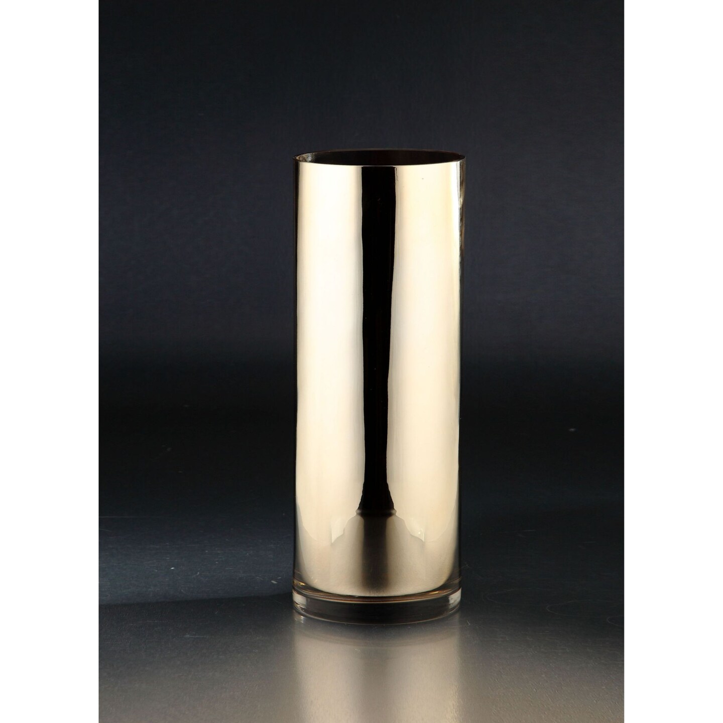 CC Home Furnishings 15.5" Metallic Gold Cylinder Glass Vase