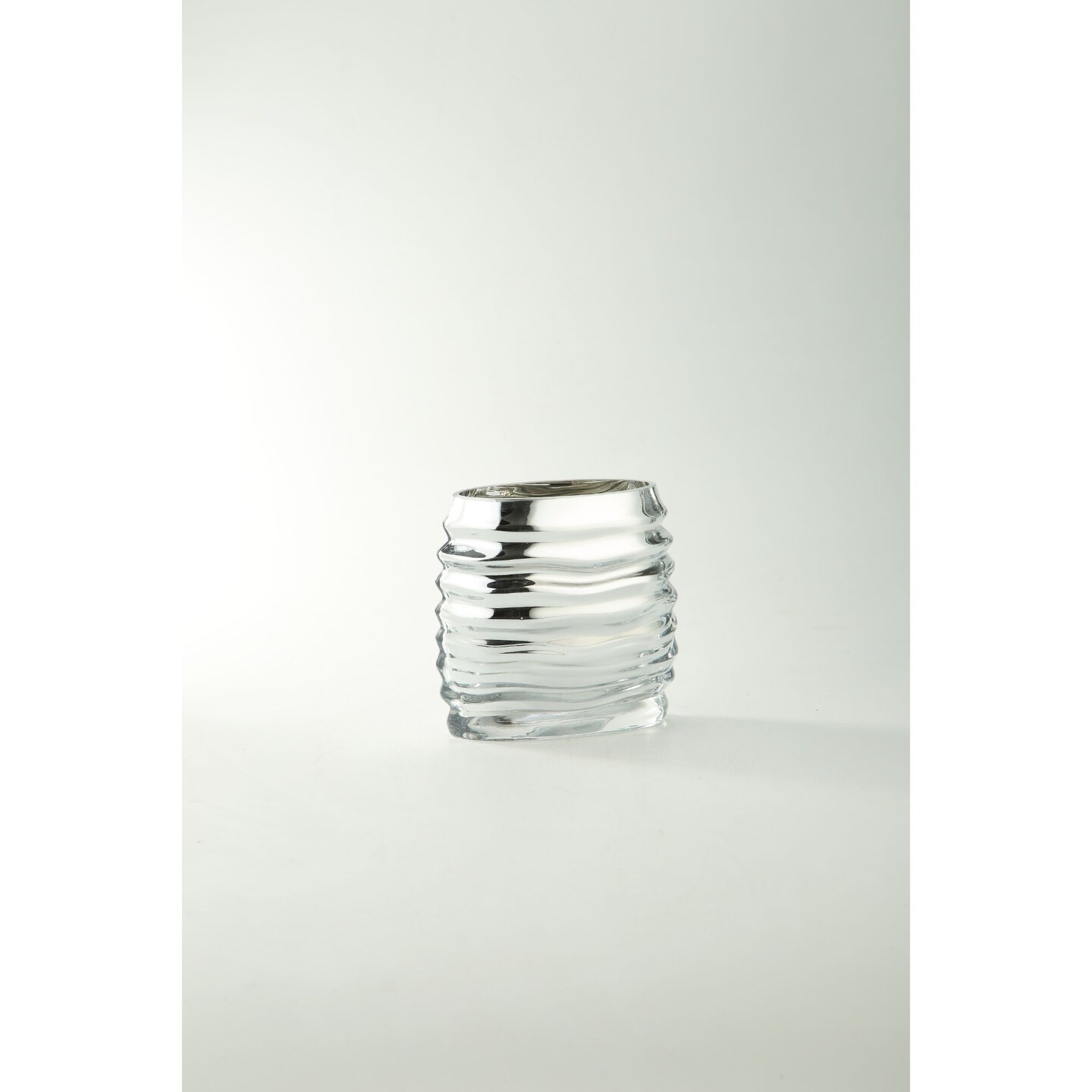CC Home Furnishings 6.5” Metallic Silver Ruffle Pattern Glass Floral Vase