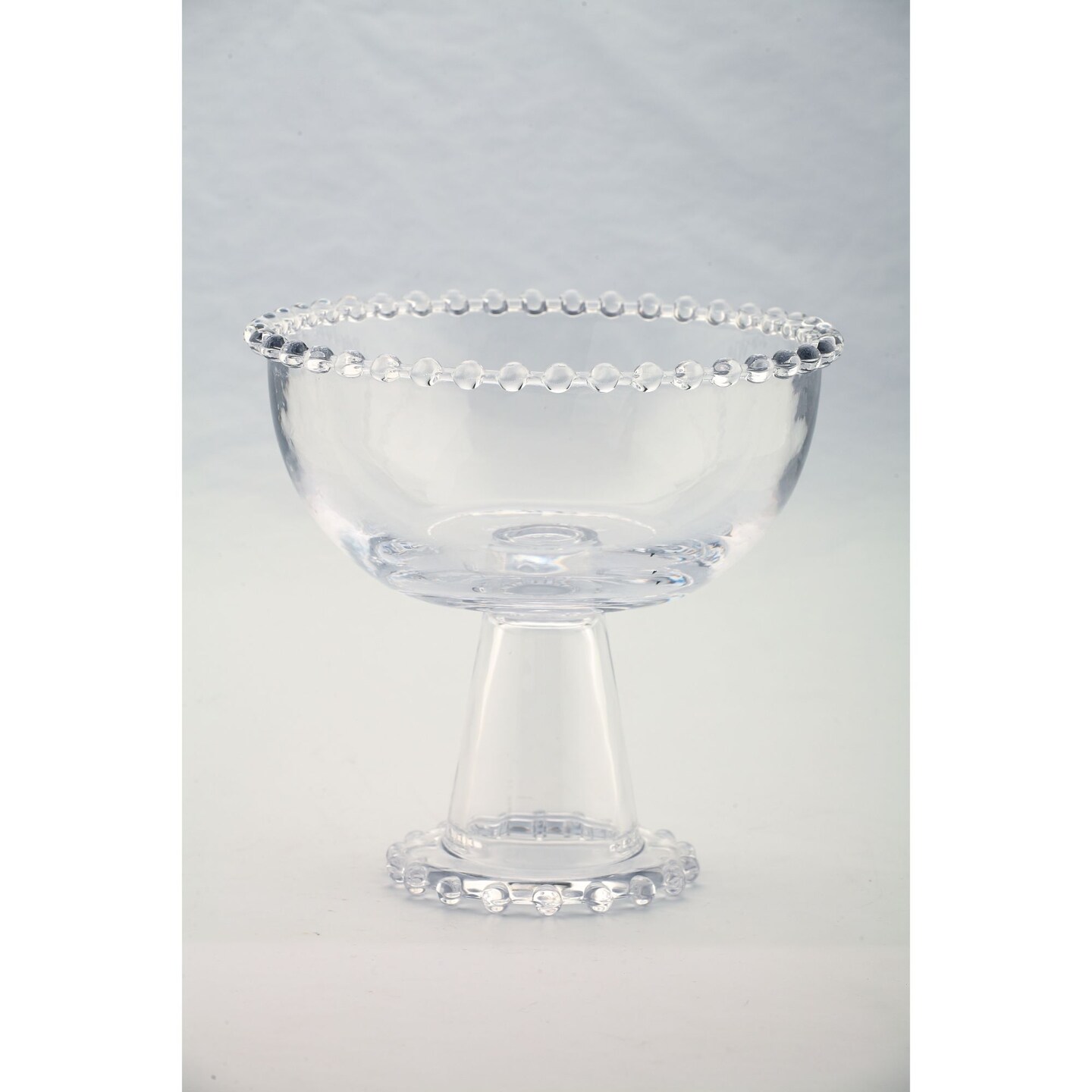 CC Home Furnishings 8" Clear Round Hand Blown Beaded Candy Bowl with Pedestal
