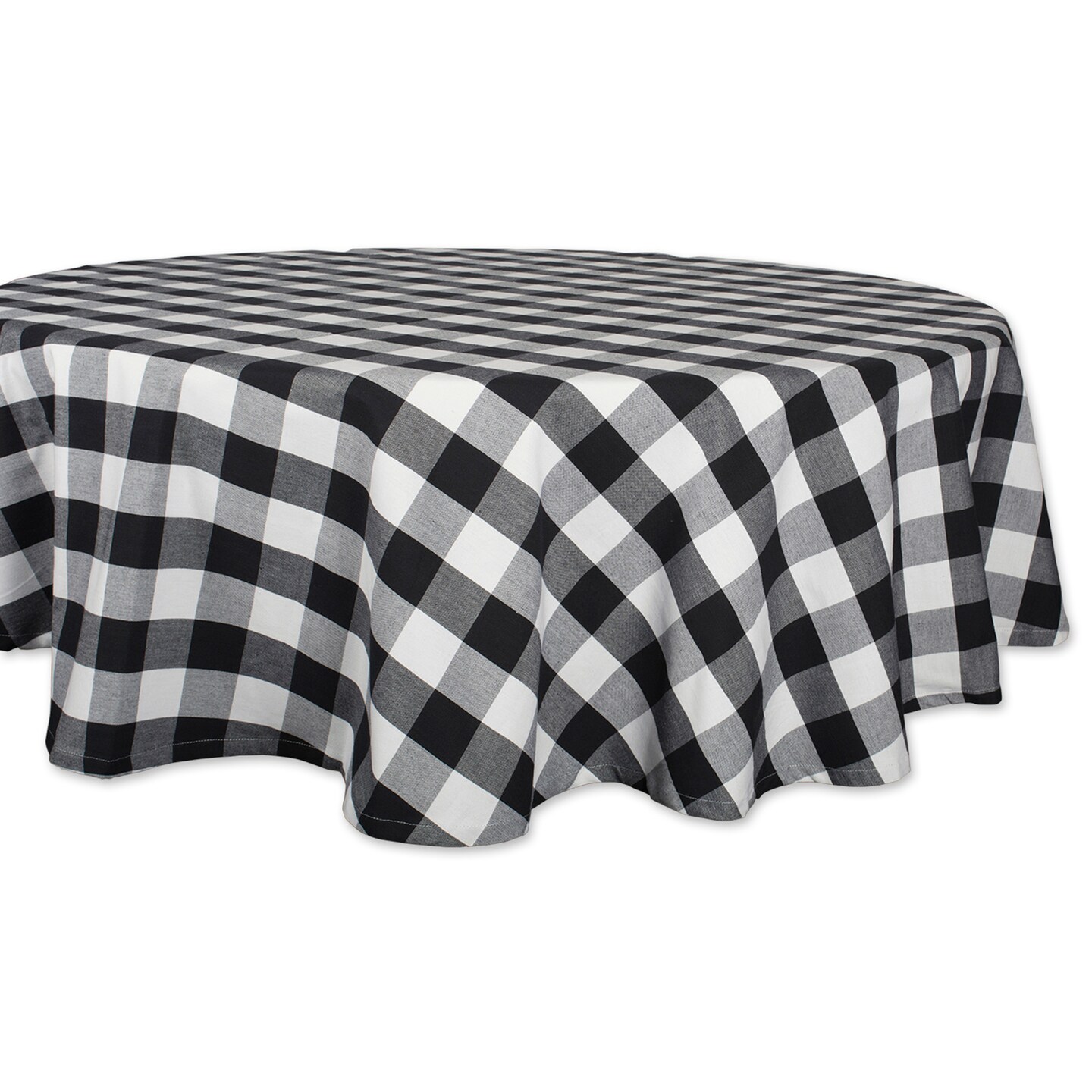 CC Home Furnishings Black and White Buffalo Checkered Designed Round Tablecloth 70"