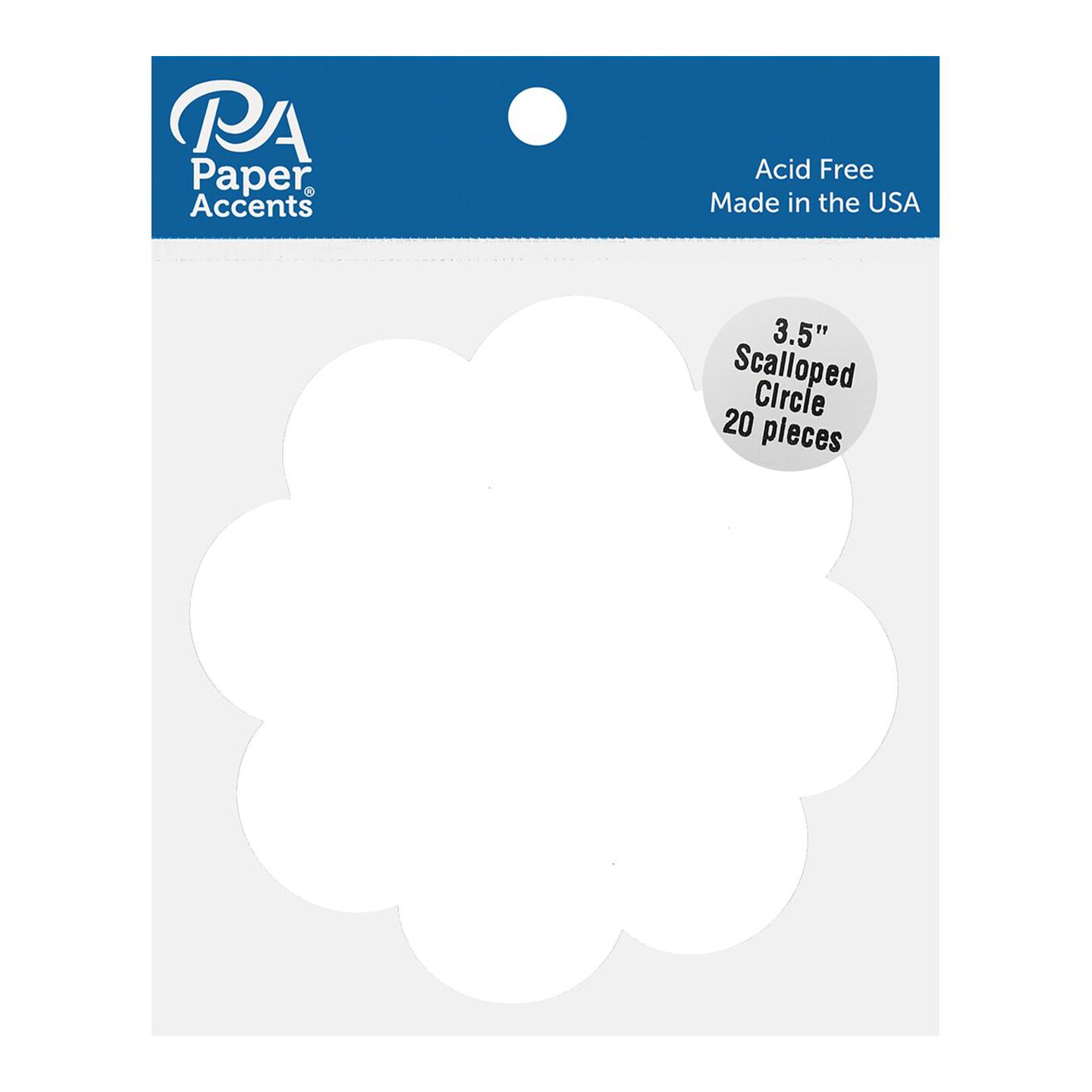 Cdstk Shape Scalloped Circle 3.5 20pc 65lb White