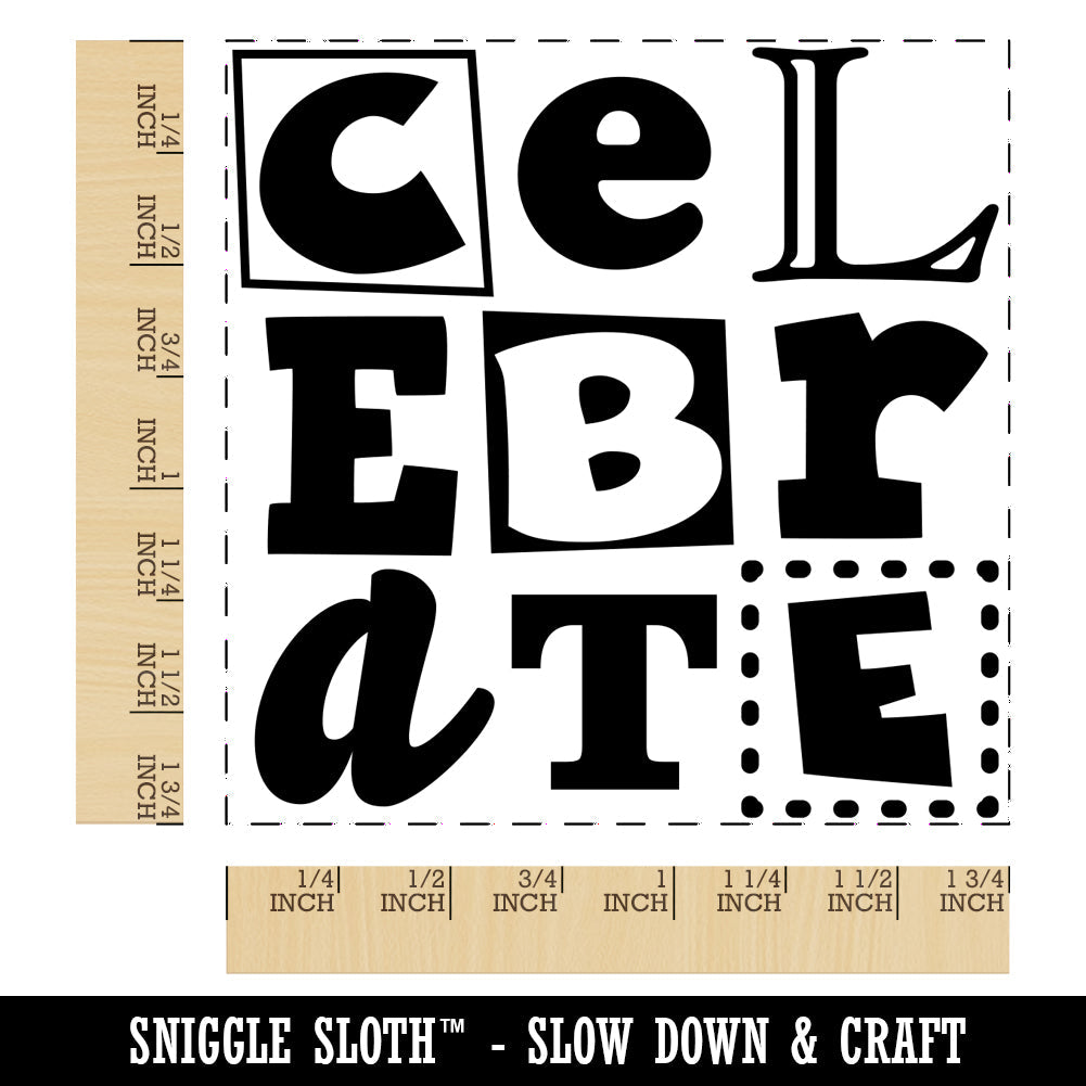 Celebrate Fun Text Square Rubber Stamp for Stamping Crafting