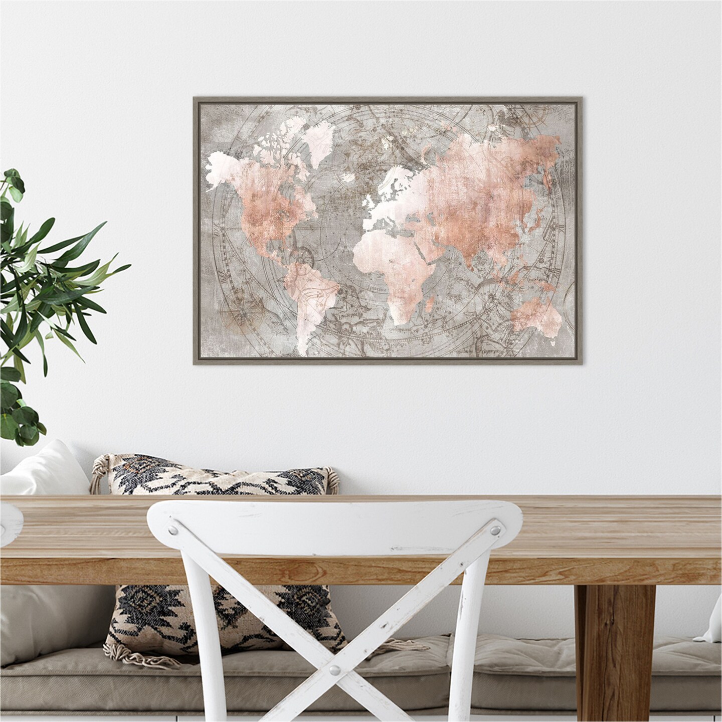 Celestial World Map (Pink) by Isabelle Z 23-in. W x 16-in. H. Canvas Wall Art Print Framed in Grey