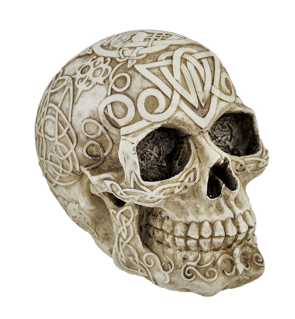 Celtic Owl Knotwork Human Skull Statue Pagan