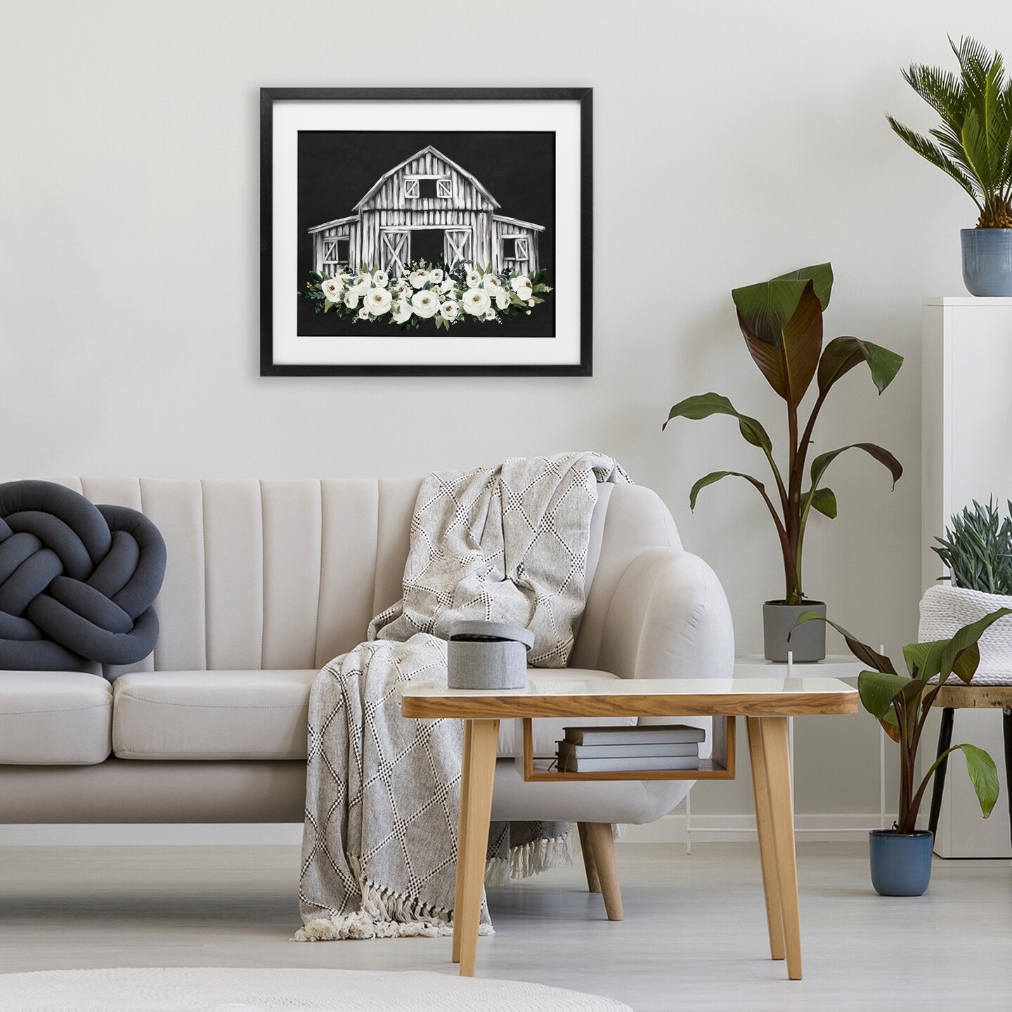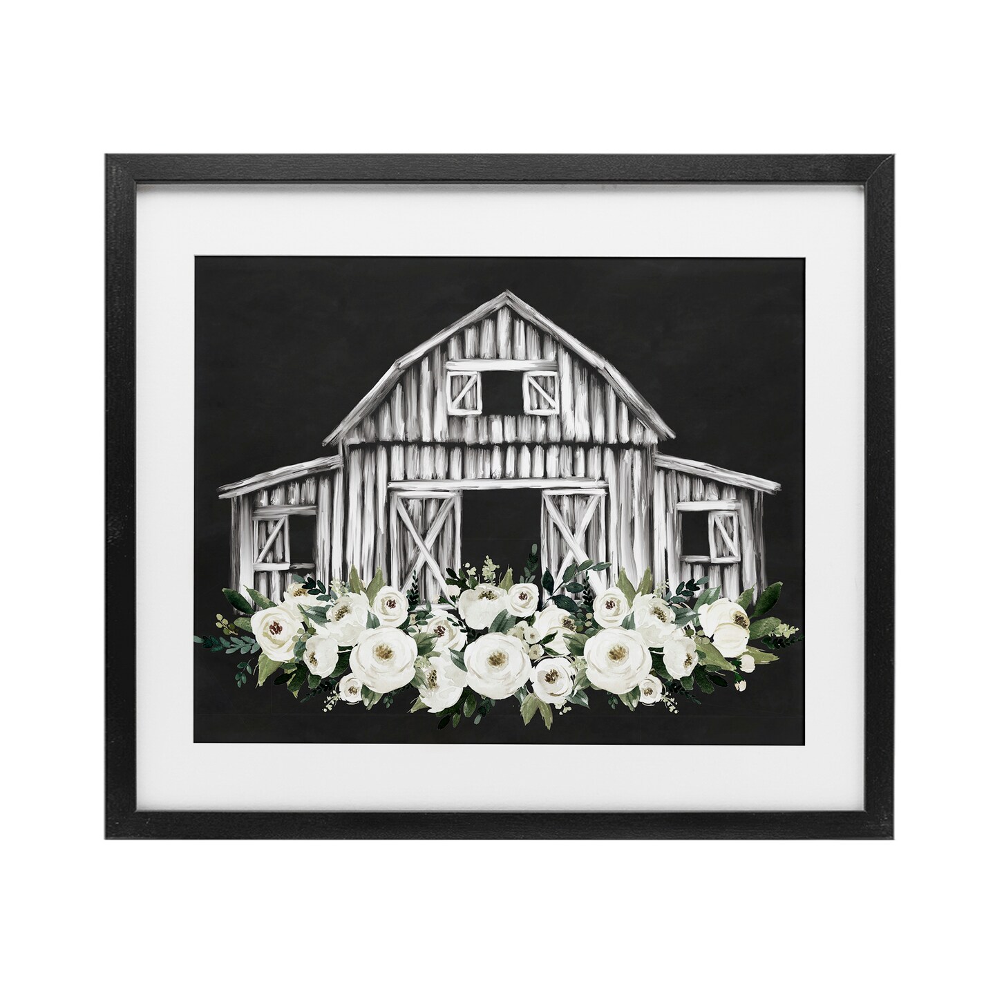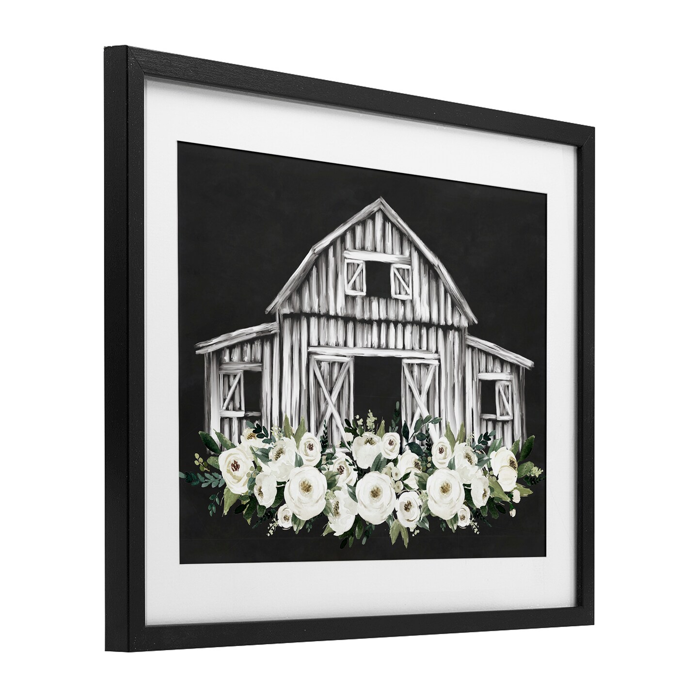 Centered Floral Farmhouse Framed Print Under Glass Art