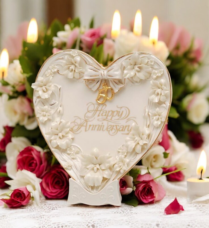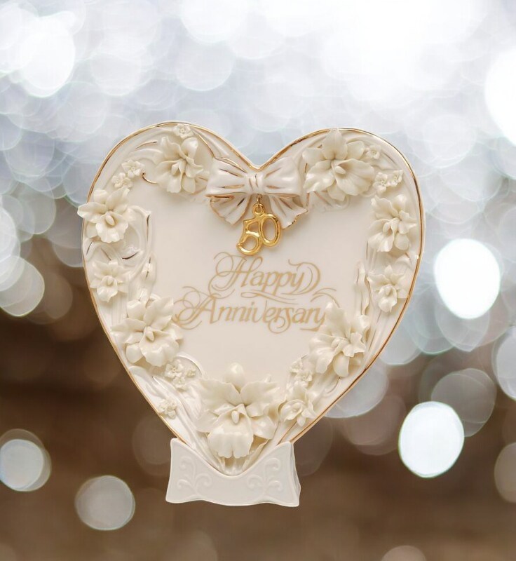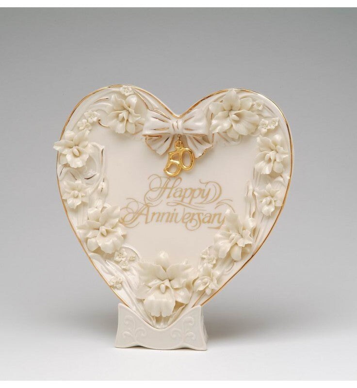 Ceramic 50th Wedding Anniversary - Orchid Flowers Heart Plate and Stand, Gift for Parents, Gift for Her