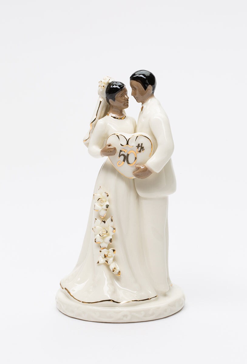 Ceramic African American 50th Anniversary Couple Cake Topper, Anniversary Décor or Gift