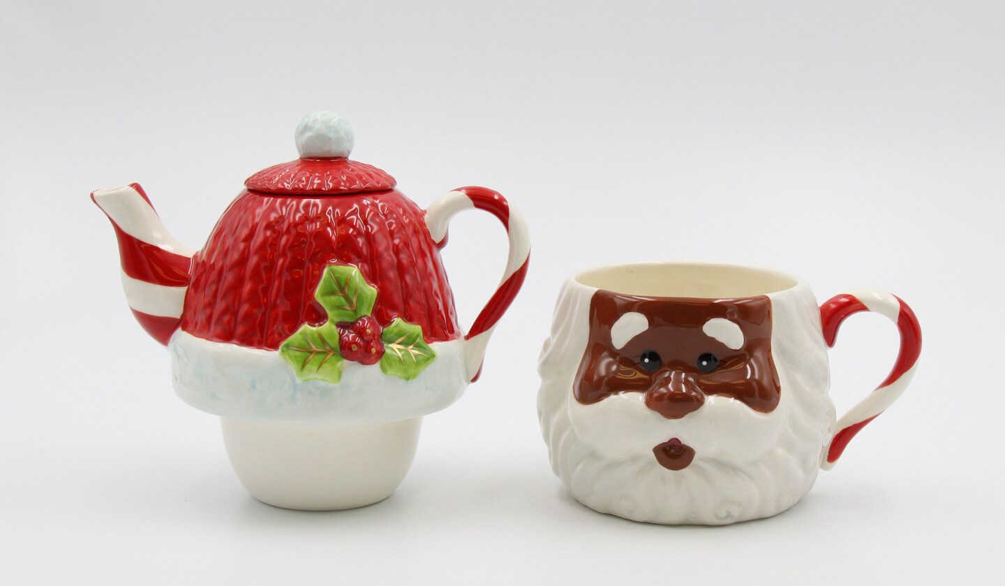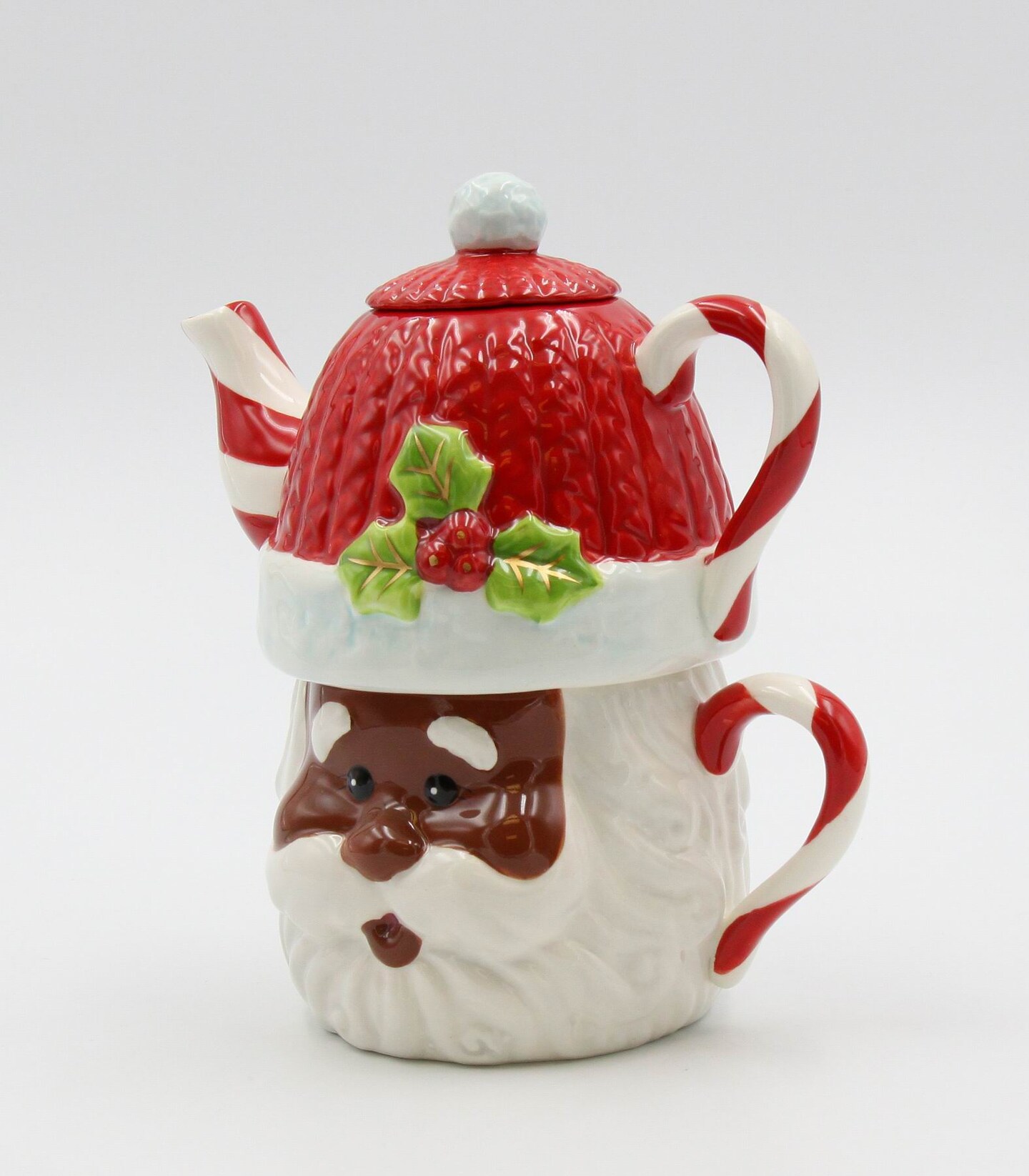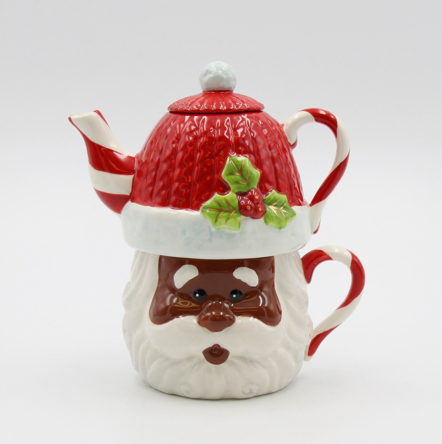 Ceramic African American Christmas Santa Claus Tea For One, Gift for Her, Gift for Mom, Tea Party Décor, Café Décor, Christmas Decor