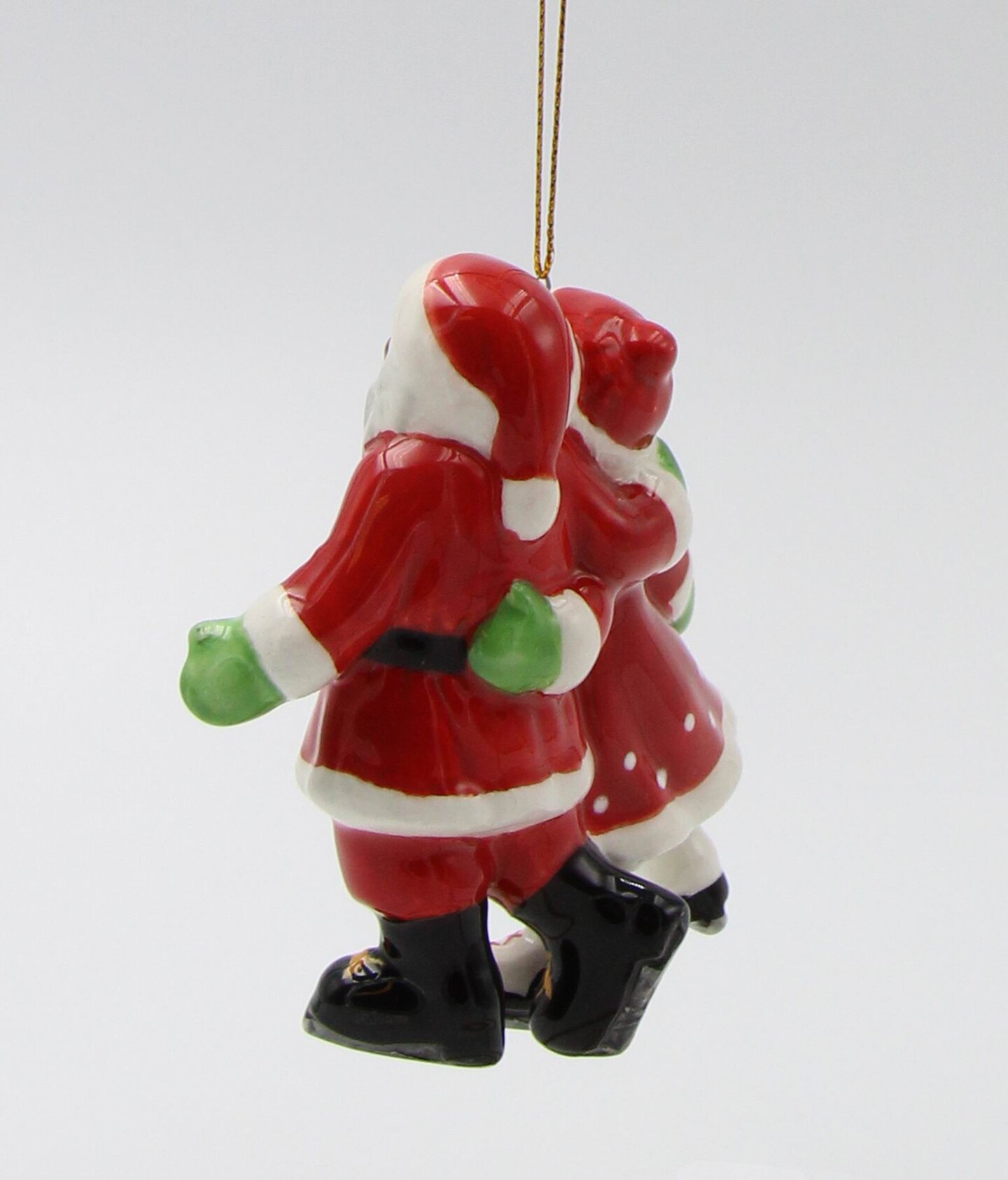 Ceramic African American Santa And Mrs. Claus Ice Skating Ornament, Gift for Her, Mom, Him, Dad, Christmas tree Décor, Wall Decor