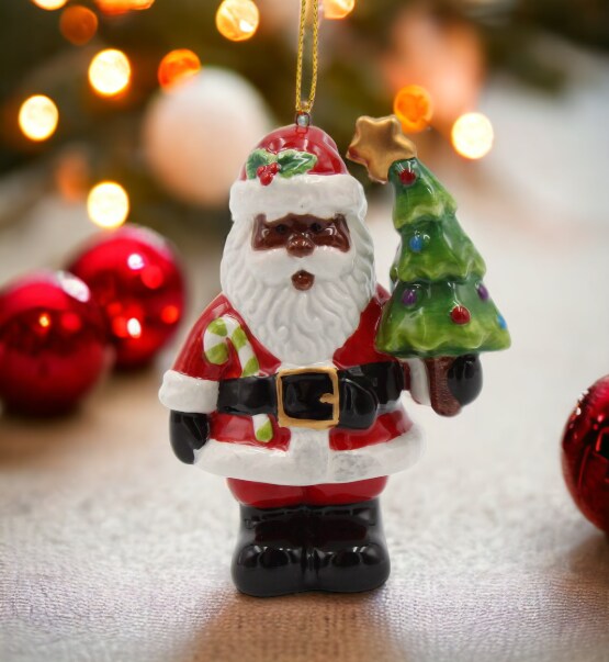 Ceramic African American Santa Claus With Christmas Tree Ornament, Home Décor, Gift for Her, Gift for Mom, Kitchen Décor, Christmas Décor