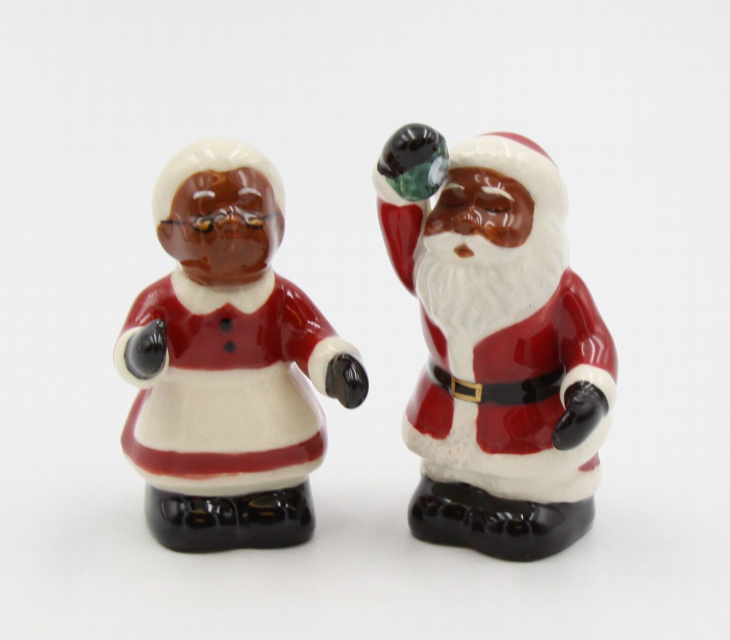 Ceramic African American Santa Couple Salt And Pepper Shakers, Home Décor, Gift for Her, Gift for Mom, Kitchen Decor, Christmas Decor