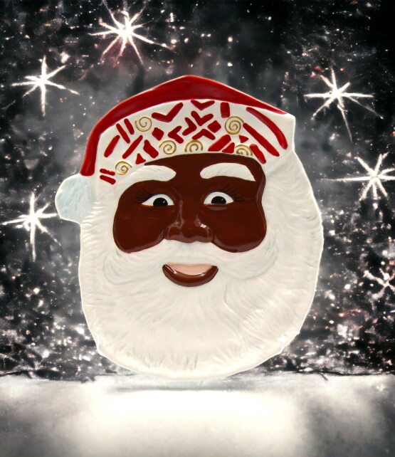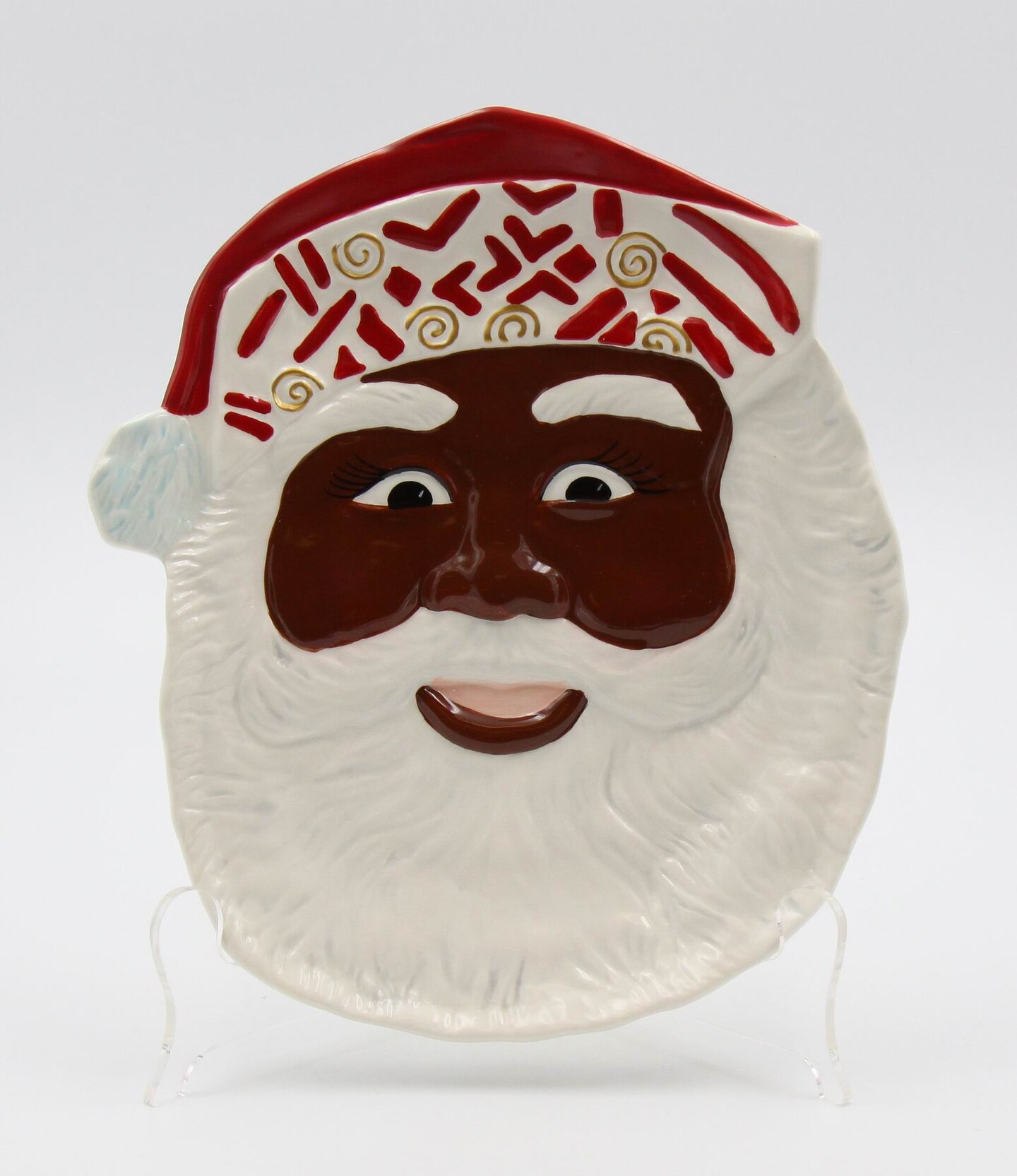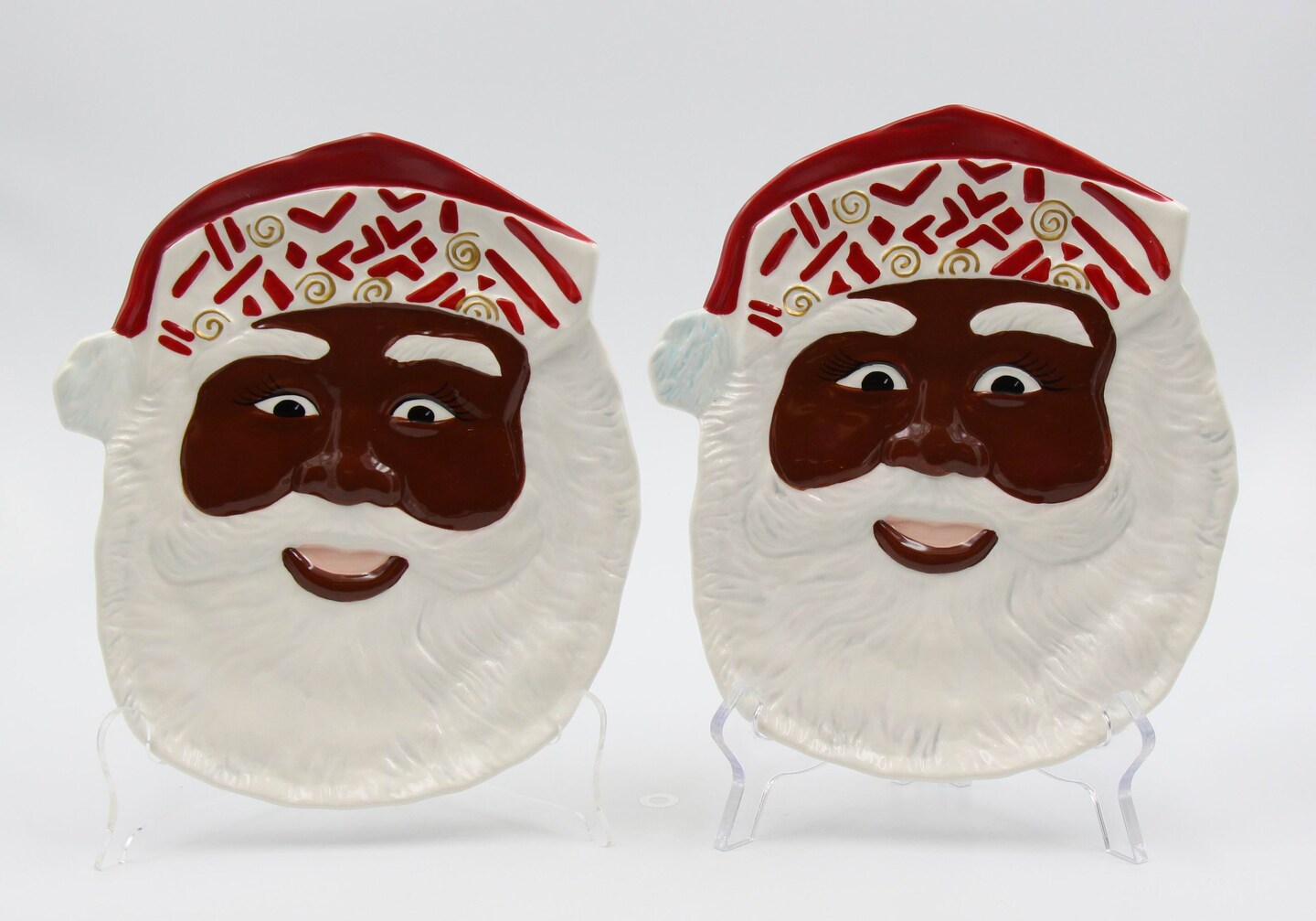 Ceramic African American Set Of 2 Santa Plates, Home Décor, Gift for Her, Gift for Mom, Kitchen Décor, Christmas Décor