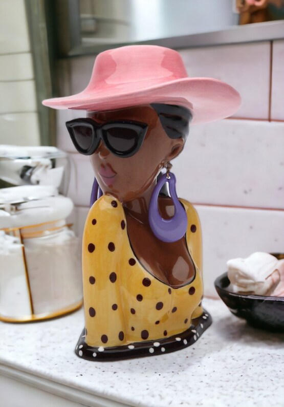 Ceramic African American Summer Lady Brush or Pen Holder, Home Décor, Gift for Her, Mom, Friend, or Coworker, Vanity Décor