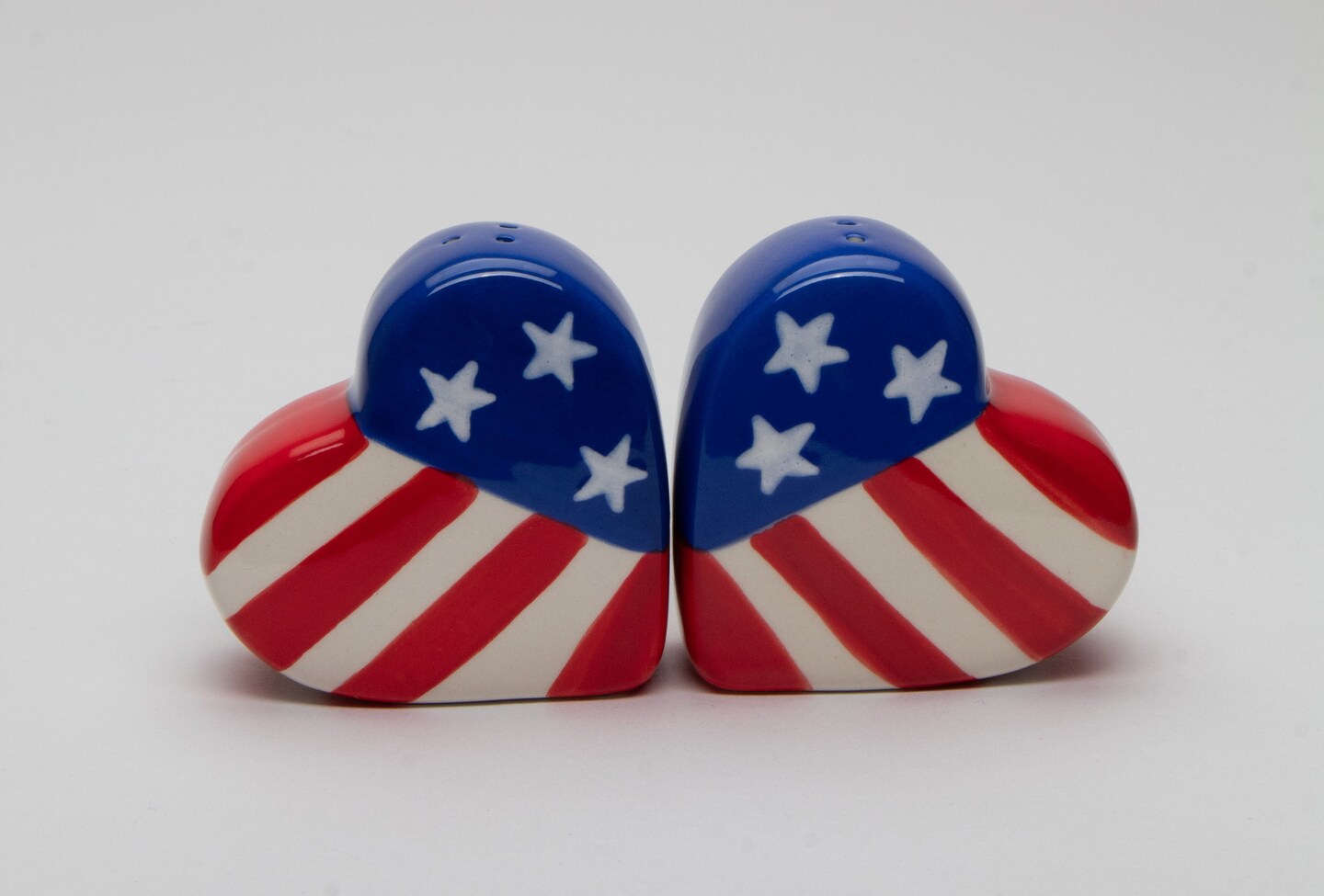 Ceramic American Flag Heart Salt and Pepper Shakers, Home Décor, Patriot Gift, Gift for Mom, Dad, Independence Day Décor, July 4th