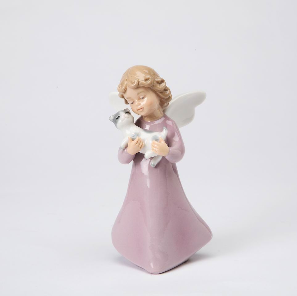 Ceramic Angel Holding Cat Figurine, Home Décor, Gift for Her, Gift for Mom, Kitchen Décor, Cat Lovers Gift, Pet Loss Gift
