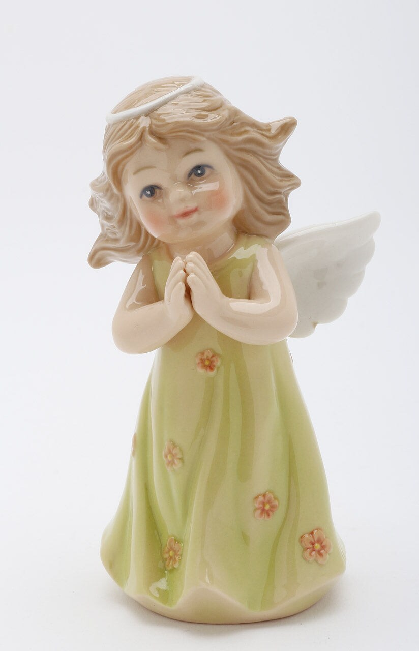Ceramic Angel In Green Dress Figurine, Religious Décor, Religious Gift, Church Décor, Church Gift, Baptism Gift