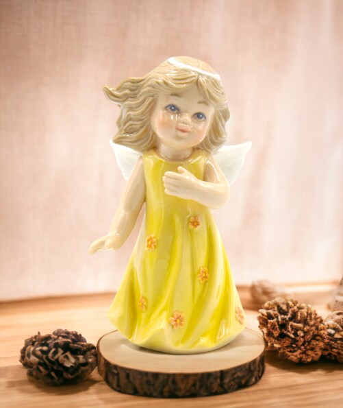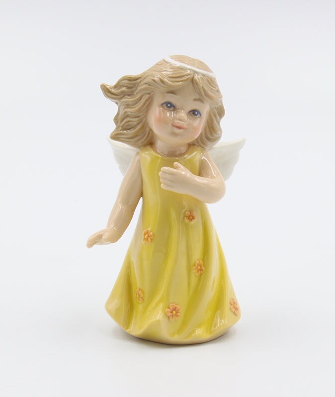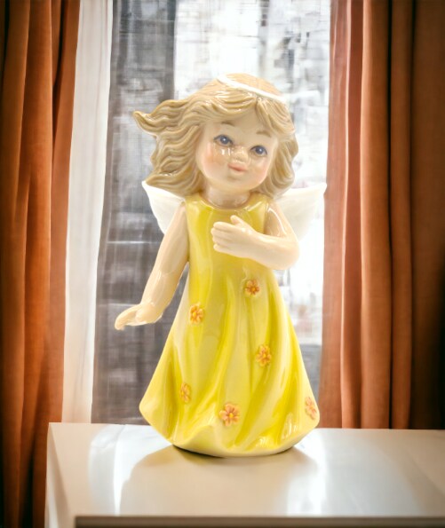Ceramic Angel In Yellow Dress Figurine, Religious Décor, Religious Gift, Church Décor, Church Gift, Baptism Gift