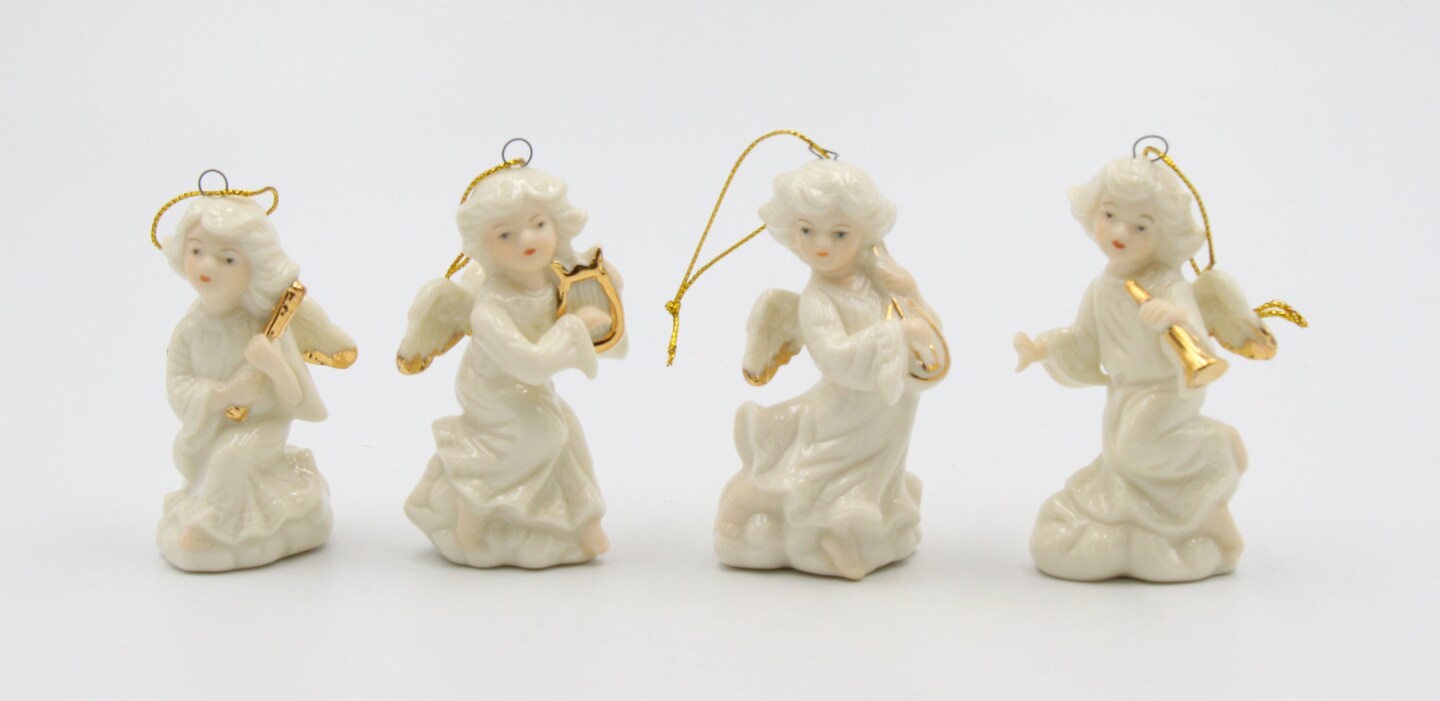 Ceramic Angel Ornaments-Set of 4, Religious Décor, Religious Gift, Church Décor, Church Gift, Baptism Gift