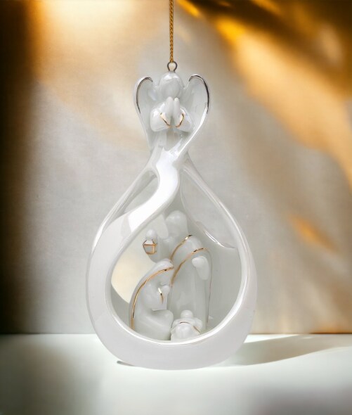 Ceramic Angel Watching Over Holy Family Nativity Ornament, Home Décor, Religious Décor, Religious Gift, Church Décor, Baptism Gift