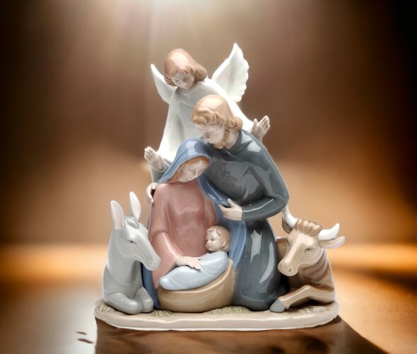 Ceramic Angel With Holy Family Nativity Figurine, Christmas Décor, Religious Décor, Gift, Church Décor, Baptism Gift, Easter Décor