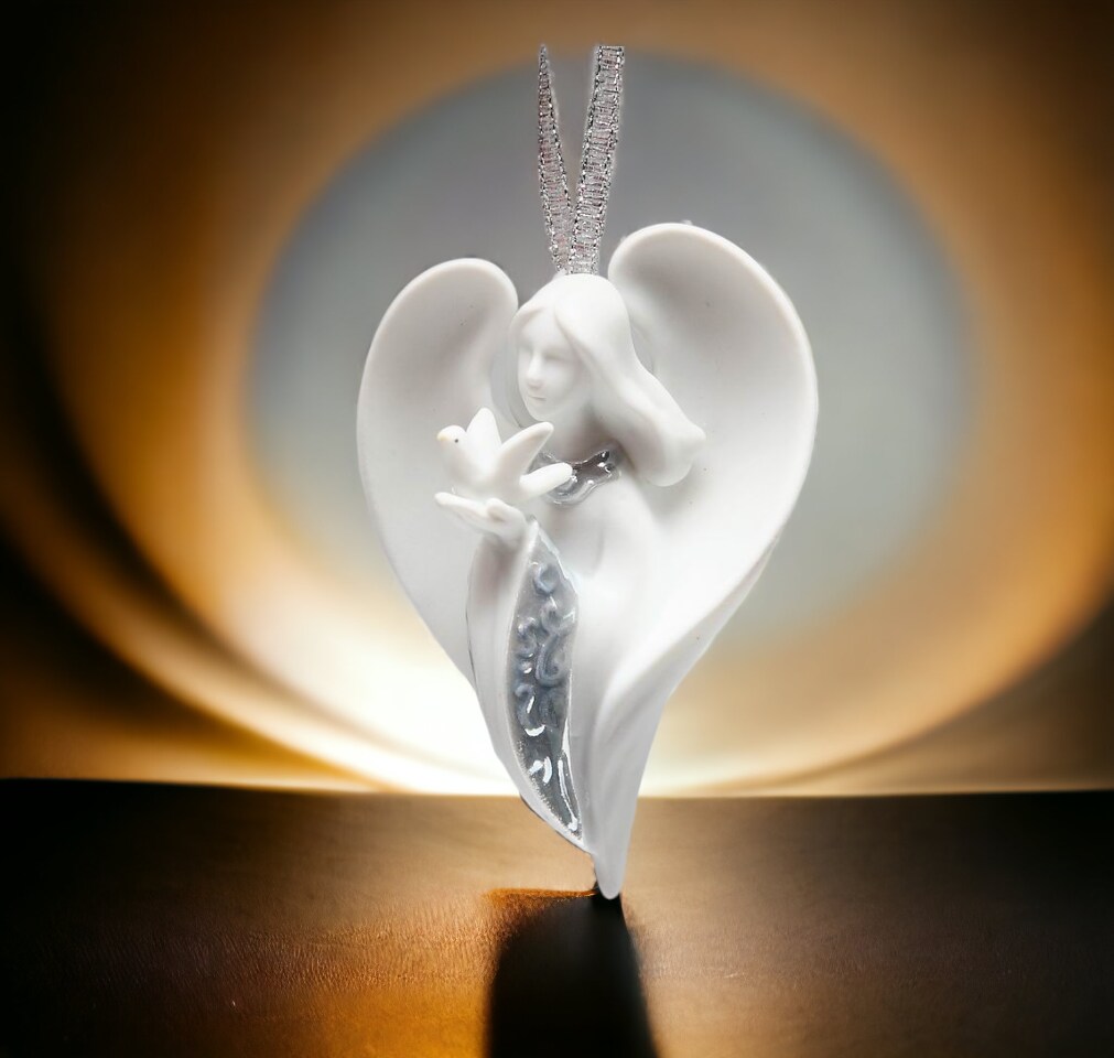 Ceramic Angel With Peace Dove Ornament, Home Décor, Religious Décor, Religious Gift, Church Décor, Baptism Gift, Christmas Decor