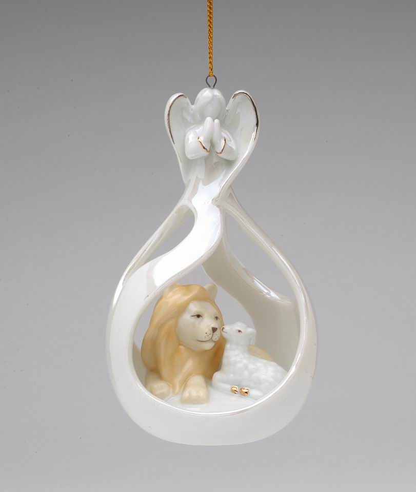 Ceramic Angel with The Lion and Lamb Eternal Peace Ornament, Home Décor, Religious Décor, Religious Gift, Church Décor, Baptism Gift