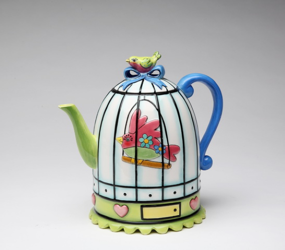 Ceramic Birdcage Teapot, Gift for Her, Gift for Mom, Tea Party Décor, Café Décor, Spring Kitchen Decor