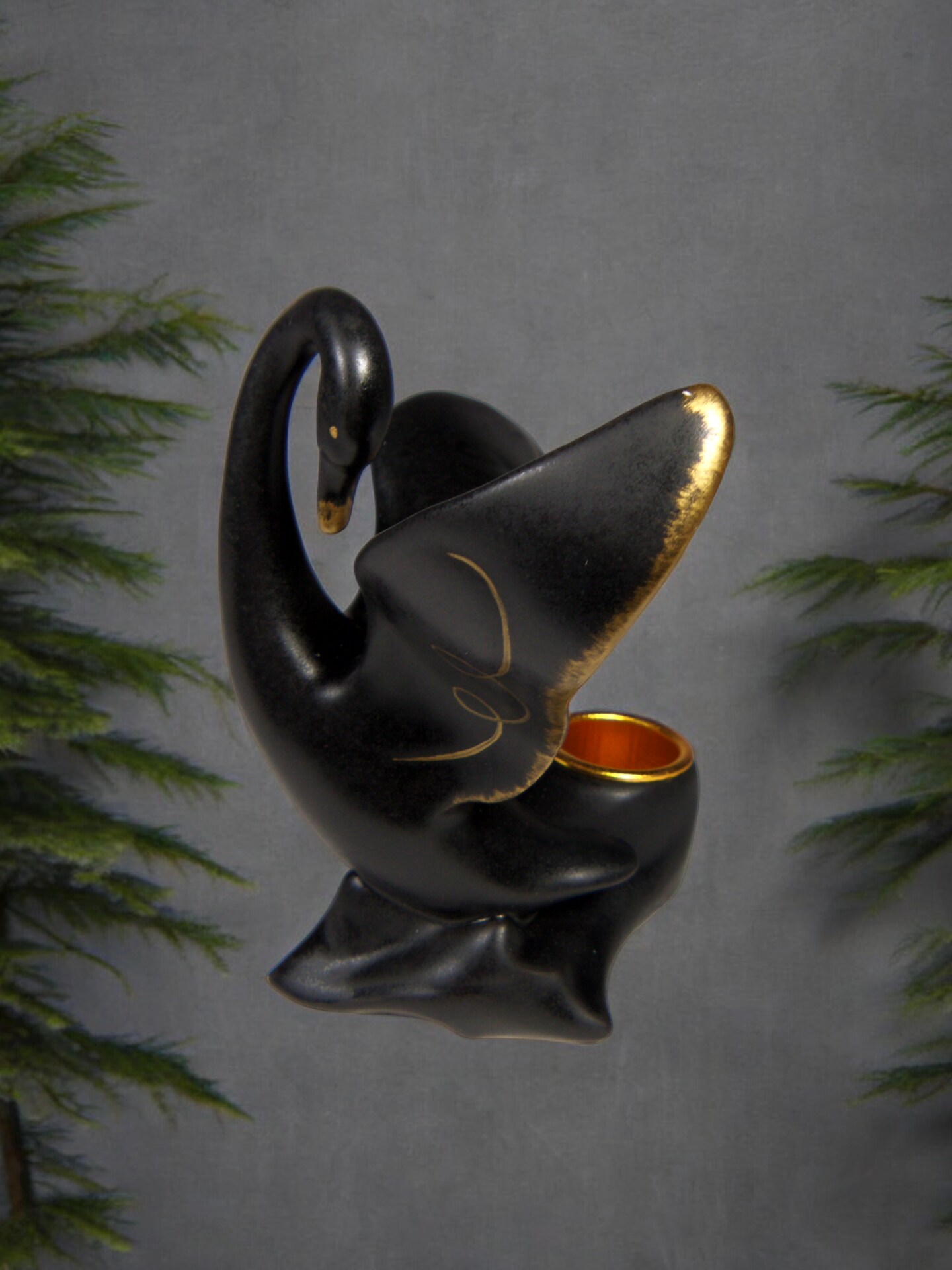 Ceramic Black Swan with Golden Accents Candle Holder, Vanity Decor, Modern Home Decor, Gift for Her, Gift for Mom