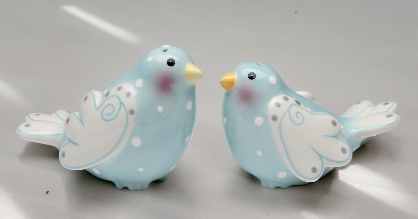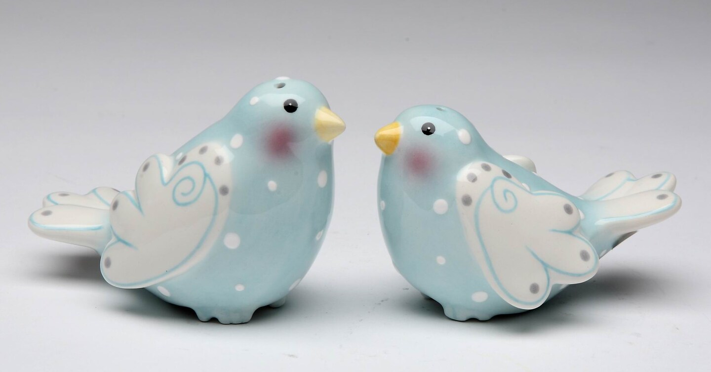 Ceramic Blue Dove Birds with White Wings Salt and Pepper Shakers, Wedding Decor, Birdwatcher Gift, Gift for Her, Gift for Mom