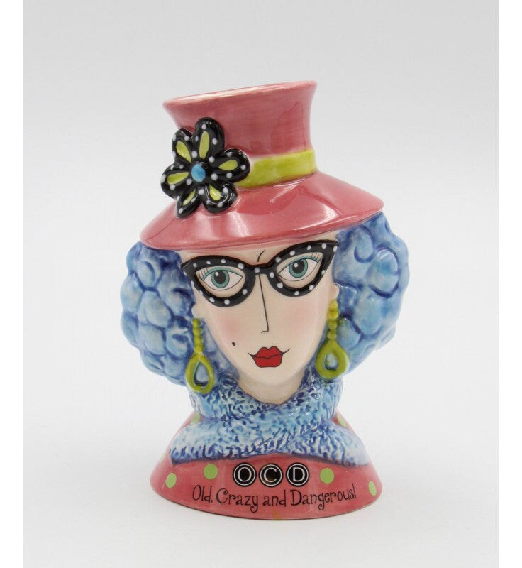 Ceramic Blue Hair Dollymama Vase, Makeup Brush Holder, Gift for Her, Vanity Decor, Kitchen Decor