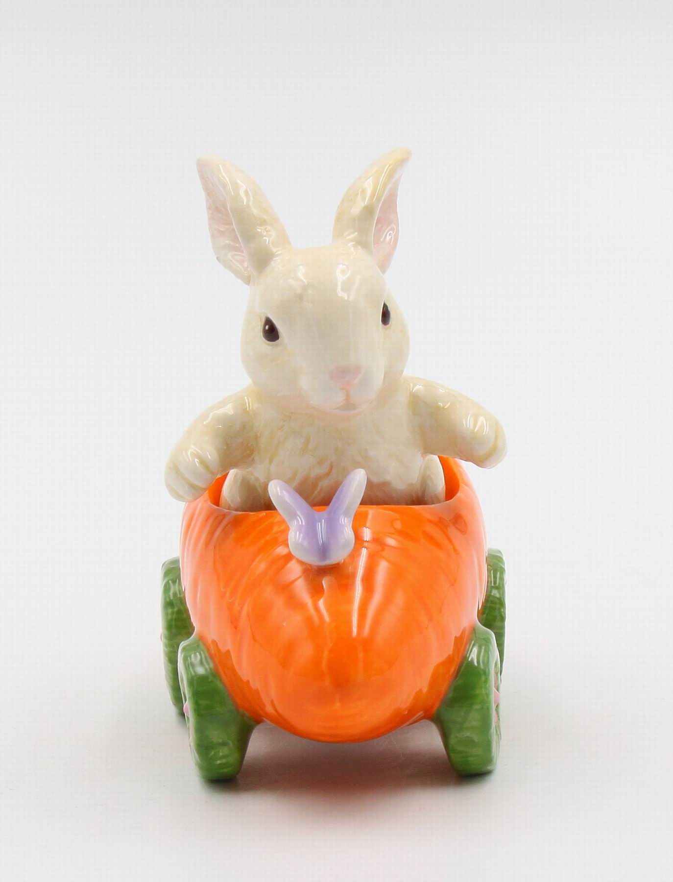 Ceramic Bunny Rabbit In Carrot Racecar Salt And Pepper Shakers, Home Décor, Gift for Her or Mom, Kitchen Décor, Spring or Easter Décor