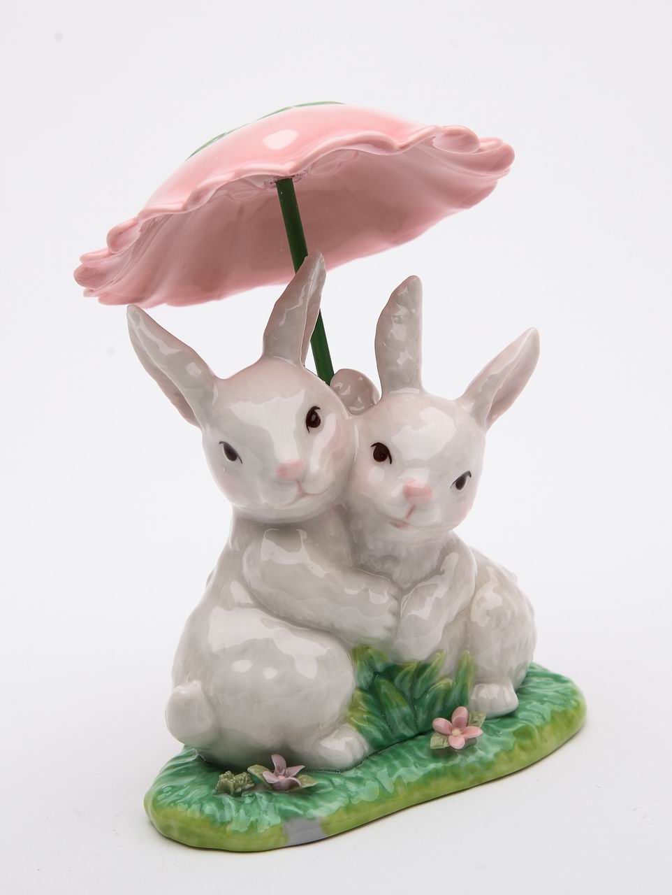 Ceramic Bunny Rabbits Sharing a Flower Umbrella, Home Décor, Gift for Her, Gift for Mom, Kitchen Décor, Spring Décor, Easter Décor