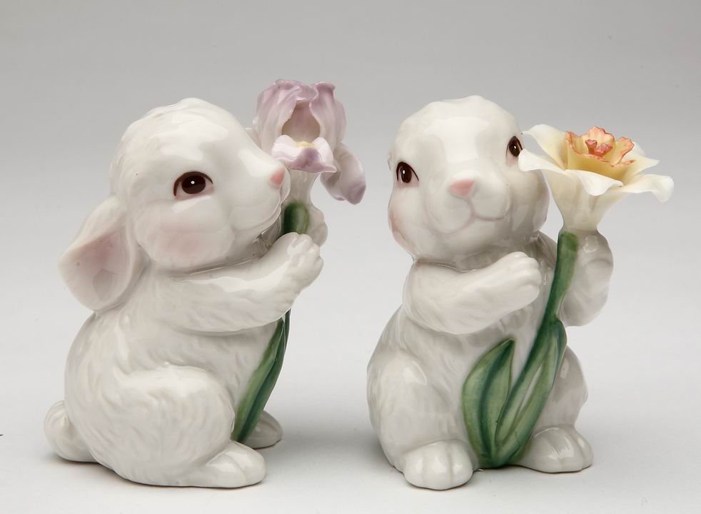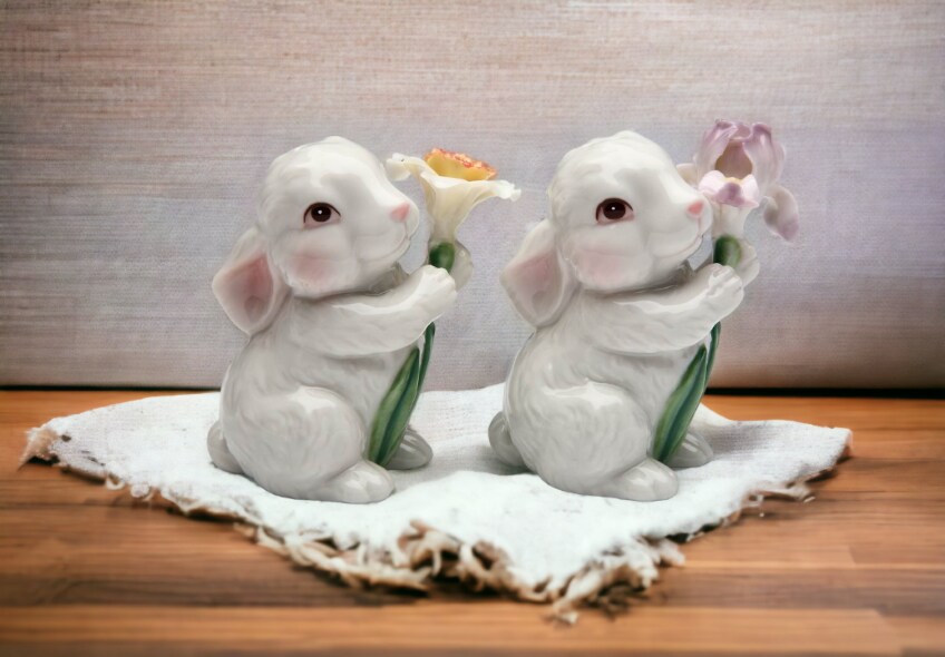Ceramic Bunny Rabbits with Flowers Salt and Pepper Shakers, Home Décor, Gift for Her or Mom, Kitchen Décor, Spring Décor, Easter Decor
