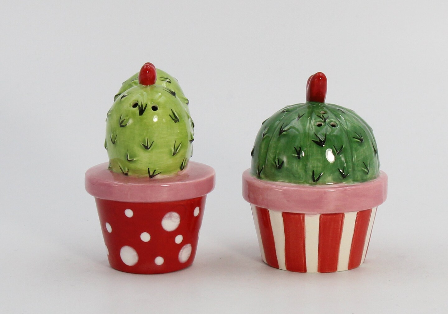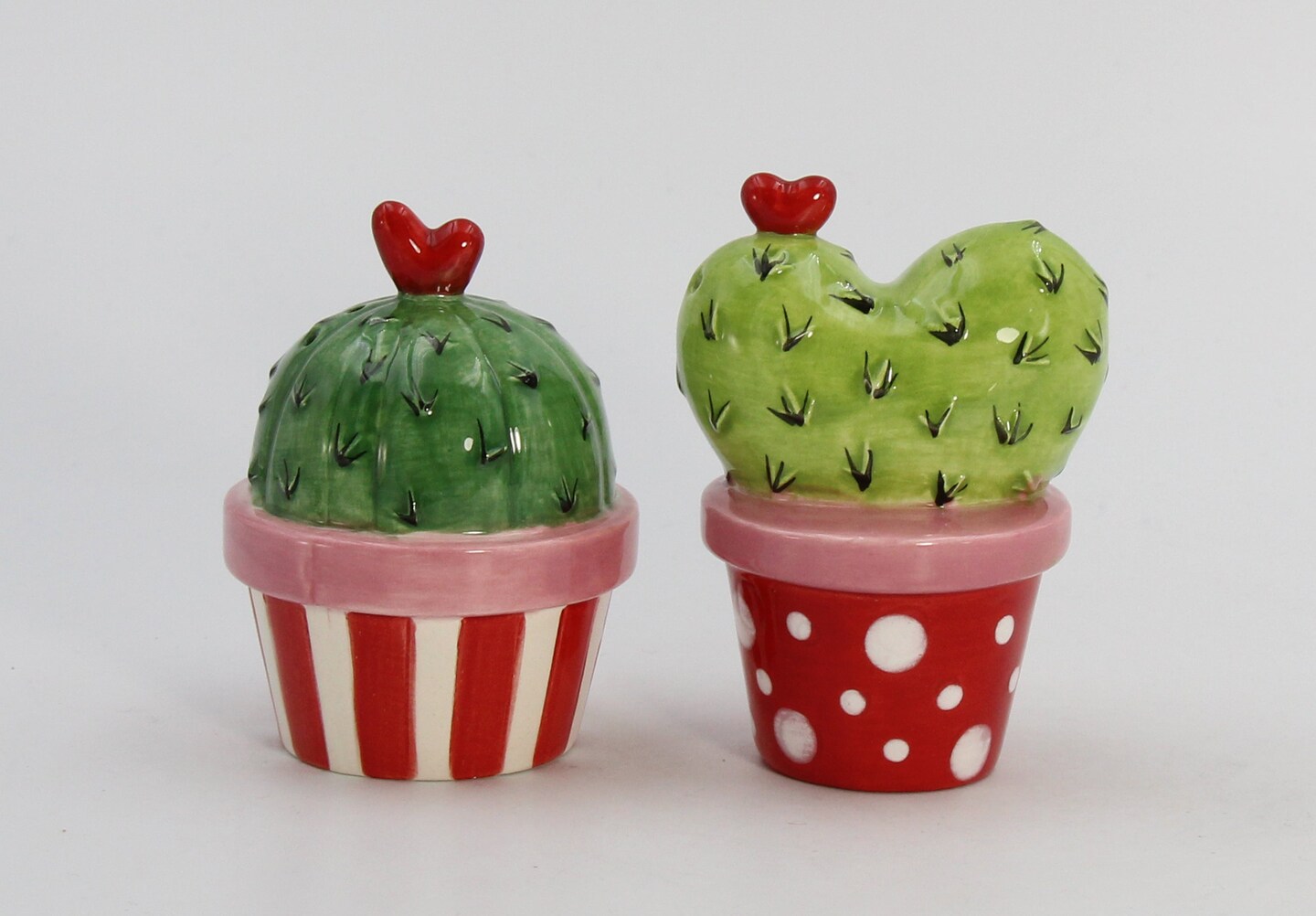 Ceramic Cactus in Pots with Heart Salt and Pepper Shakers, Valentines Day Décor, Gift for Her, Gift for Mom, Kitchen Décor