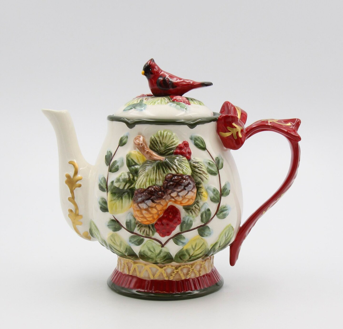 Ceramic Christmas Cardinal Bird Teapot, Gift for Her, Gift for Mom, Birdwatcher, Tea Party Décor, Café Décor, Christmas Décor