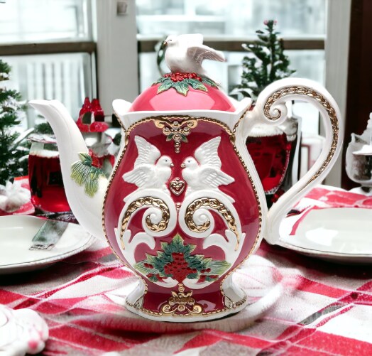 Ceramic Christmas Fantasia Teapot, Home Décor, Gift for Her, Gift for Mom, Kitchen Décor, Christmas Décor