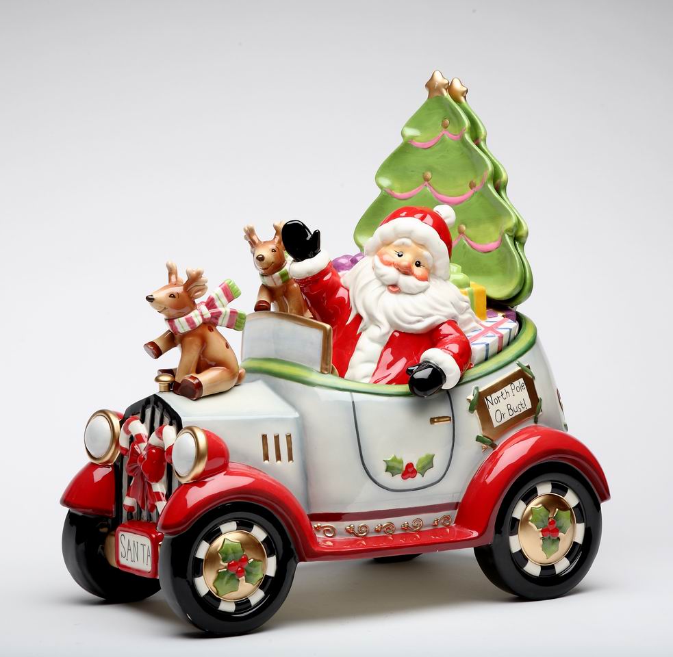 Ceramic Christmas Santa Car Cookie Jar with Cookie Plates and Salt and Pepper Shakers, Home Décor, Gift for Her, Gift for Mom, Kitchen Décor