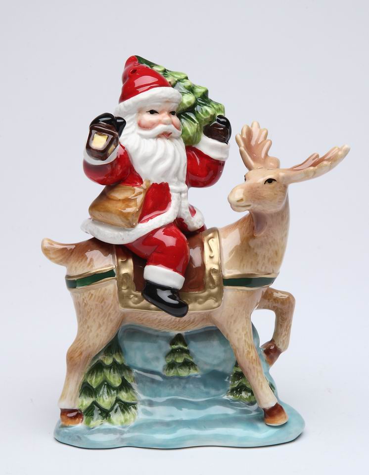 Ceramic Christmas Santa Claus Riding Reindeer Salt & Pepper Shakers, Home Décor, Gift for Her, Gift for Mom, Kitchen Décor, Christmas Décor