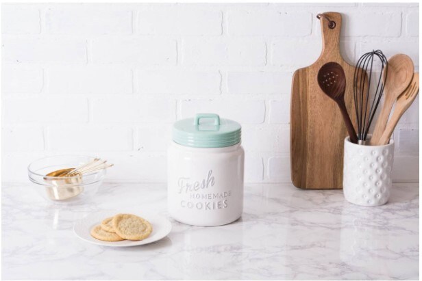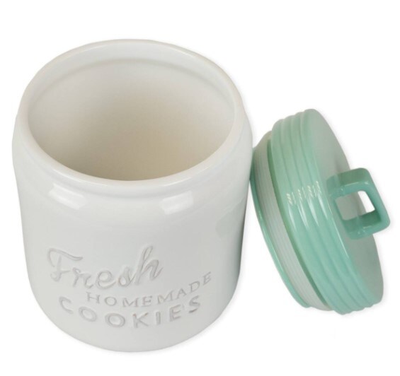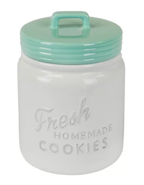 Ceramic Cookie Jar 9" Aqua & White