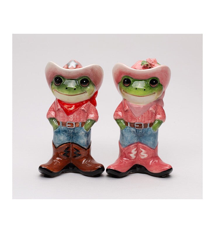 Ceramic Cowboy and Cowgirl Frog Salt and Pepper Shakers, Frog Lover Gift, Farmhouse Kitchen Decor, Gift for Her